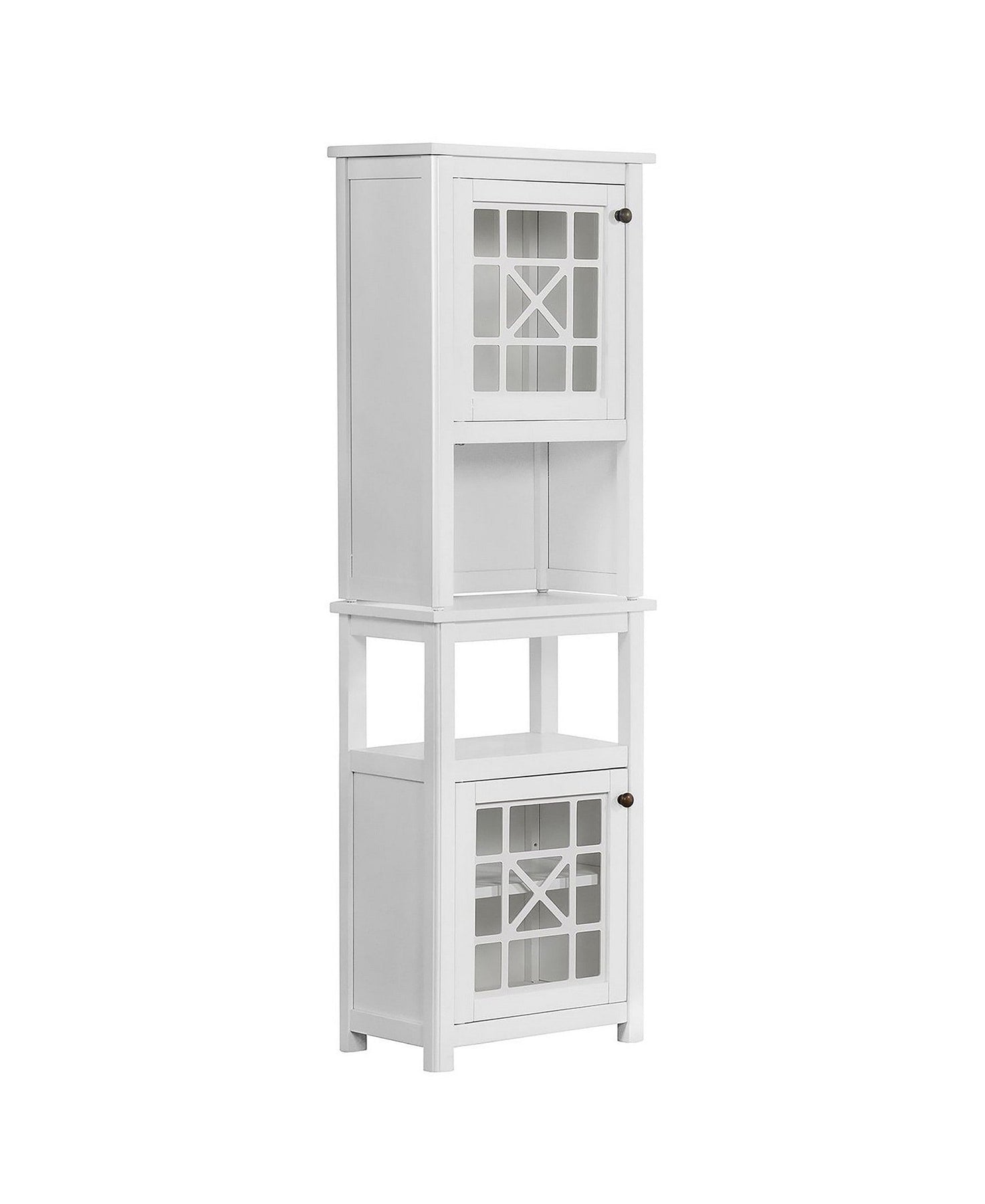 The White Wood Freestanding Linen Cabinet by Alaterre Furniture is a stylish and practical storage solution for your home. Crafted from solid pine with a sleek white finish, it features adjustable and fixed shelving behind tempered glass doors, blending functionality with a touch of elegance.