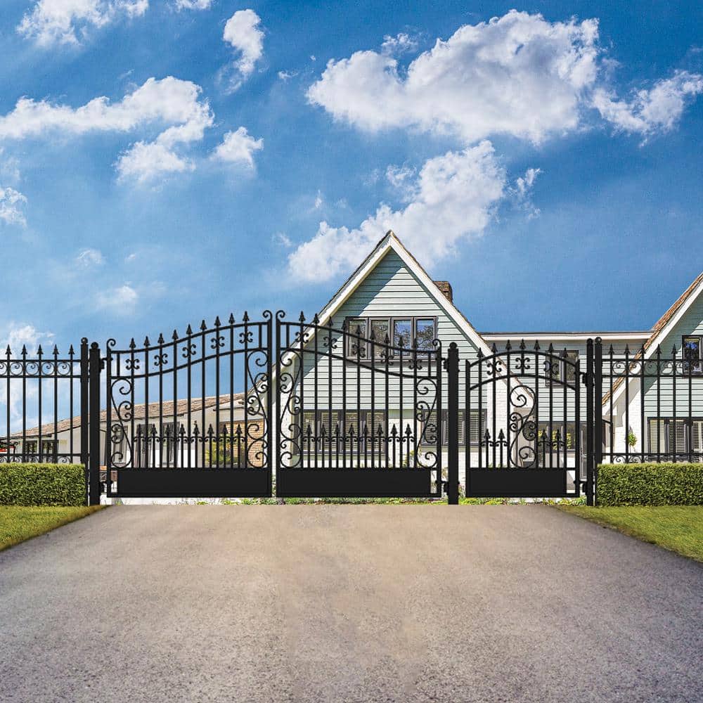 The ALEKO 17 ft. x 6 ft. Black Steel Dual Swing Driveway Gate in Venice style offers an elegant yet robust solution for securing your property. This durable gate features hot-dipped, powder-coated galvanized steel for long-lasting beauty and protection against the elements. A matching pedestrian gate provides convenient access without compromising security.