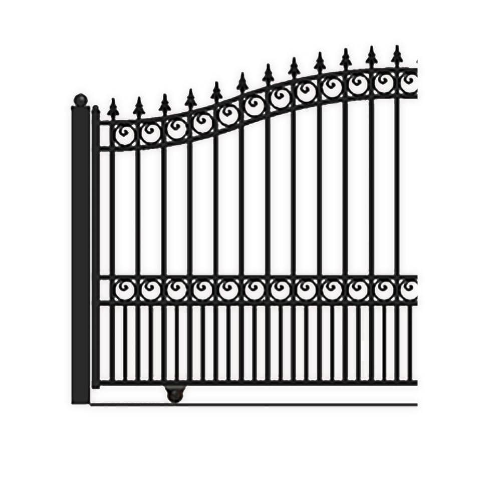 Increase your property's security and elegance with ALEKO's London Style Black Steel Sliding Driveway Gate. This robust structure features a complementary pedestrian gate, crafted from hot-dipped, powder-coated galvanized steel for long-lasting durability. Its modern, arched design adds both curb appeal and functionality to any residential or commercial space.
