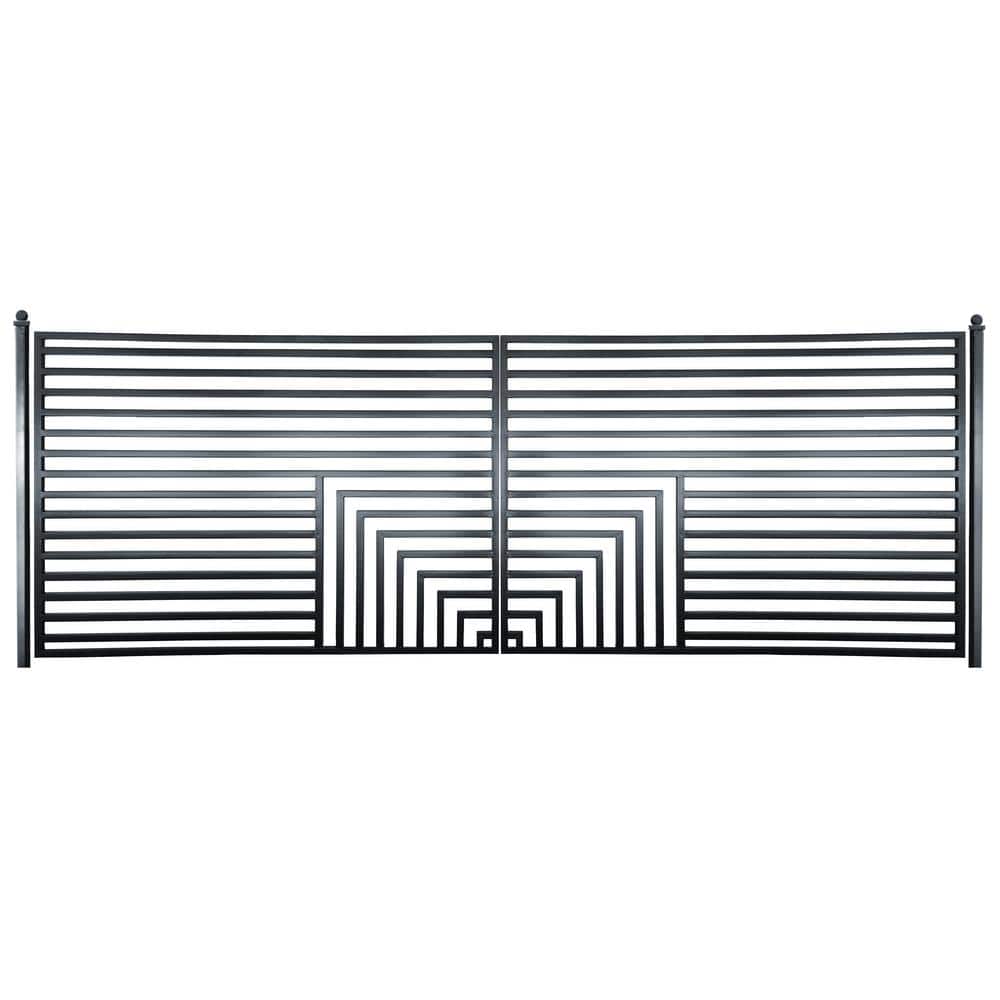 Strengthen the security and elevate the elegance of your home's entrance with the ALEKO 18 ft. x 6 ft. Florence Black Metal Steel Dual Swinging Driveway Gate. This top-rated gate combines a robust design with sophisticated aesthetics, ensuring durability and long-lasting beauty. Its hot-dipped galvanized steel construction is rust and corrosion resistant, while the powder-coated finish withstands cracking, peeling, and chipping.