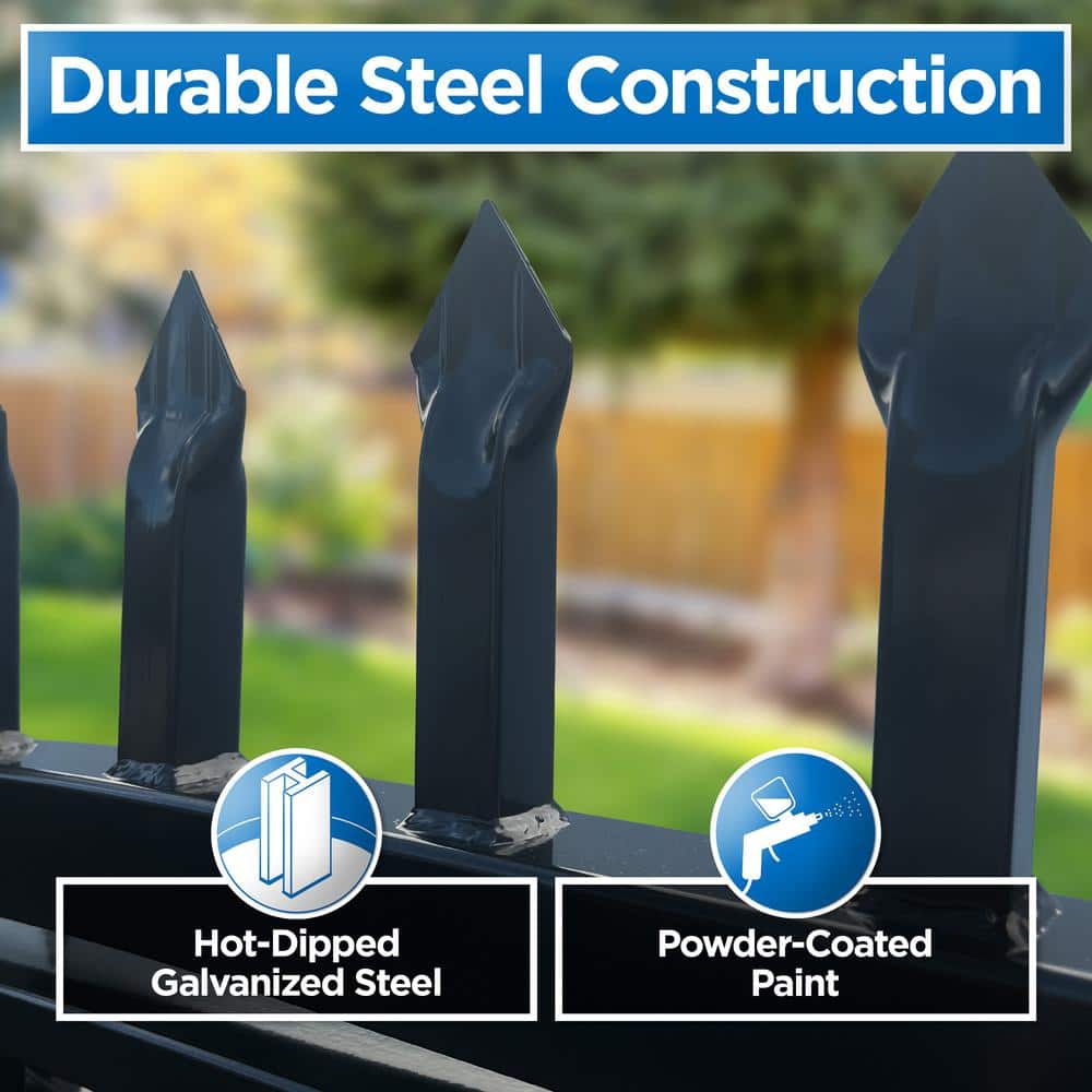 Q: Is the gate resistant to rust and weather? A: Yes, it's made from galvanized steel that's powder-coated to resist rust, UV damage, and weather-related wear, ensuring long-term durability.