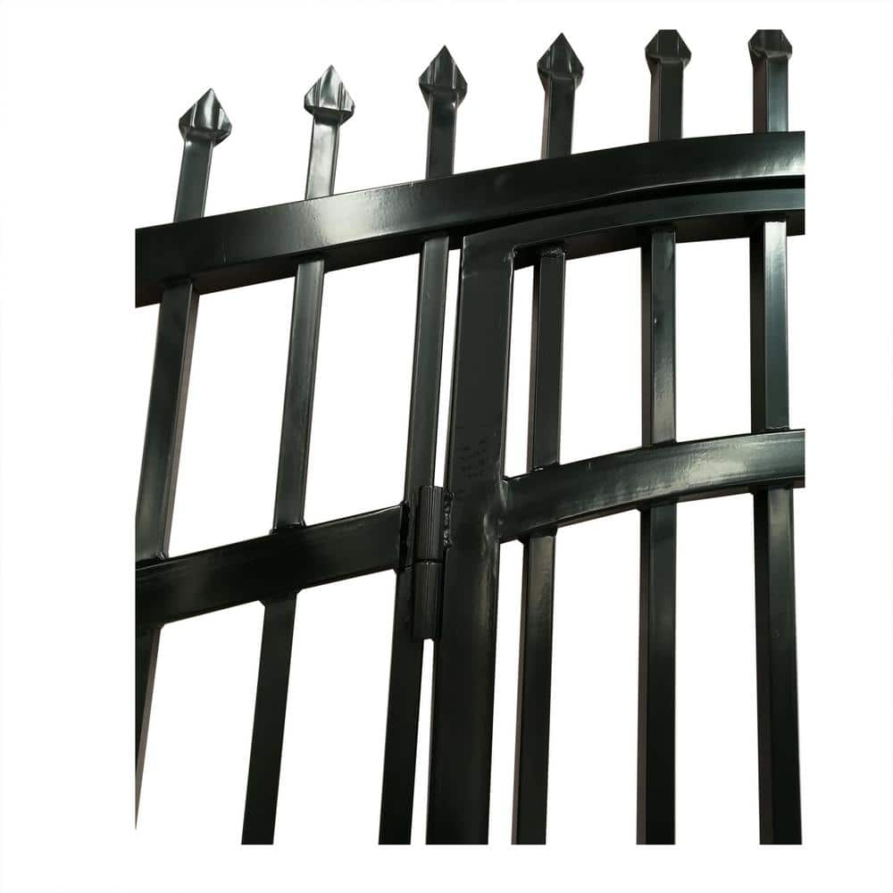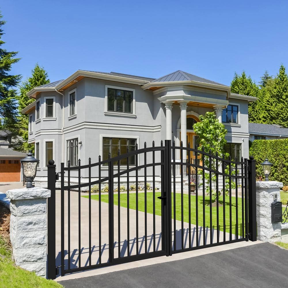 Transform your entryway with the ALEKO Vienna Driveway Fence Gate, where classic design meets modern functionality. Its striking black finish and wrought iron craftsmanship provide a bold statement piece, seamlessly blending with any architectural style. The built-in pedestrian door offers both convenience and sophistication, inviting you to explore creative landscaping opportunities. Elevate curb appeal while fortifying security, making this gate not just a barrier, but a beautiful cornerstone of your property's exterior design.