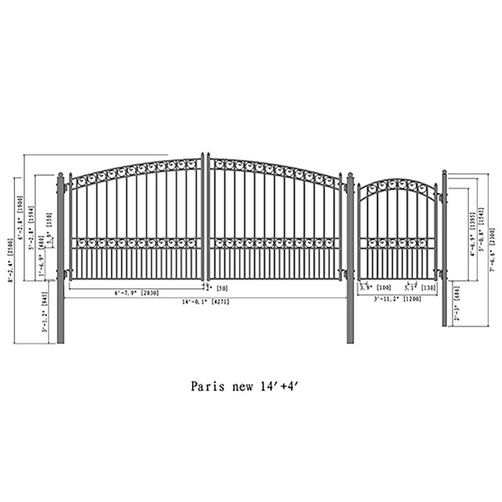 Enhance your property's security and aesthetics with ALEKO's Paris Style Dual Swing Driveway Gate. Crafted from galvanized steel, this 19 ft x 6 ft gate set offers unrivaled durability and style, complete with an additional pedestrian gate for convenient access.