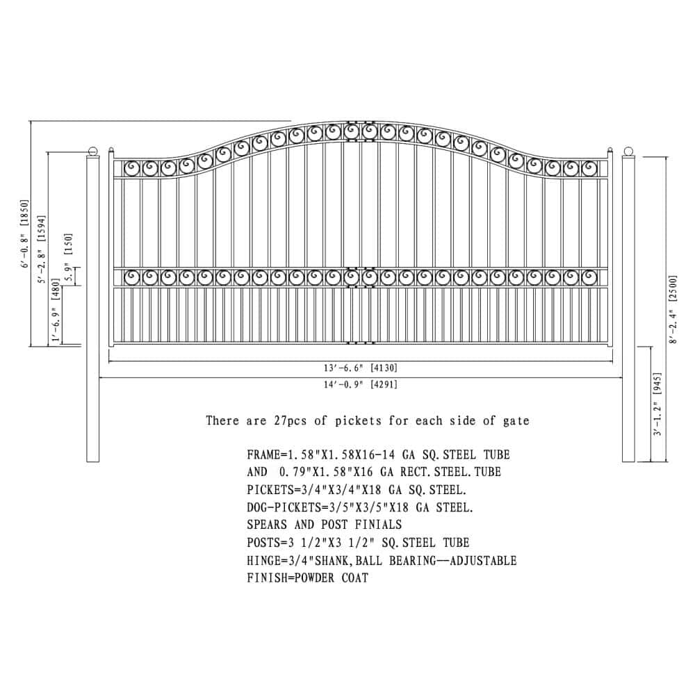 ALEKO Paris Style Black Steel Driveway Gate with Pedestrian Access