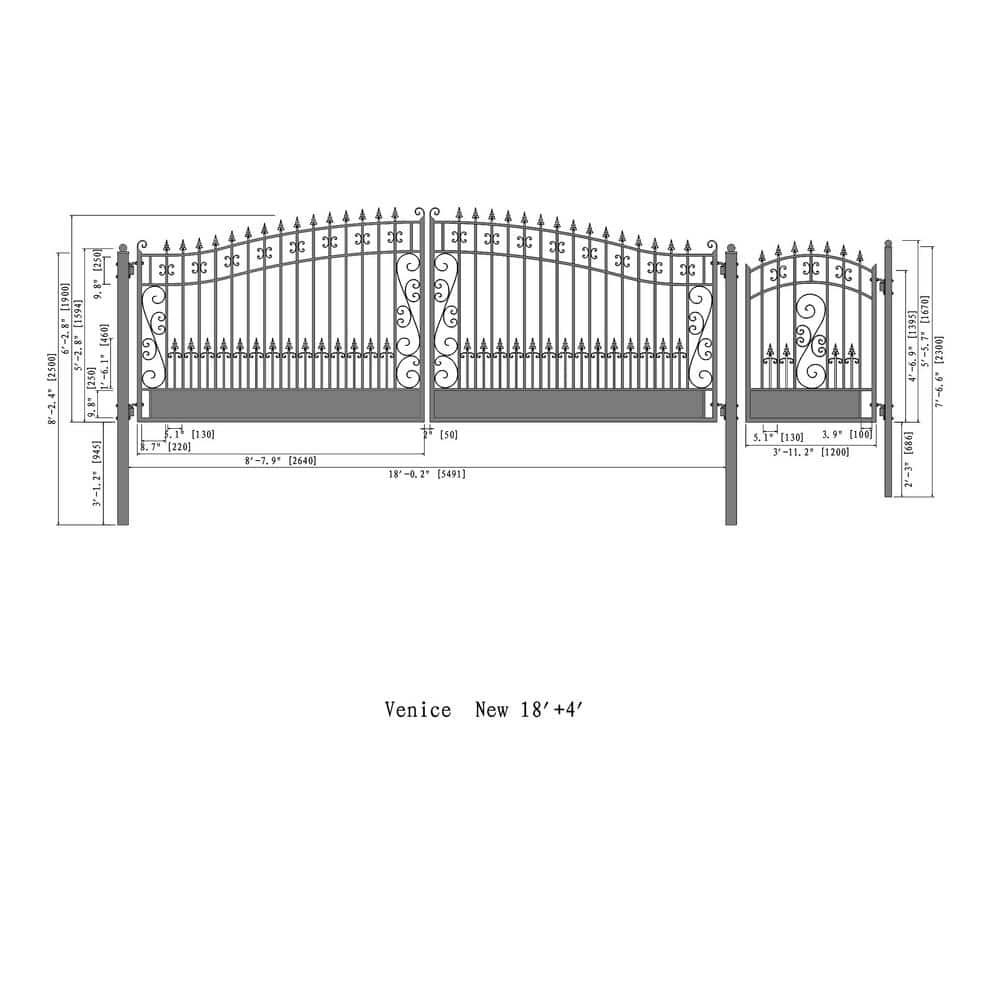 Secure your property with the ALEKO Venice Style Dual Swing Driveway Gate. Made from galvanized steel, this robust gate combines style and security, featuring a durable, powder-coated finish to withstand the elements. Enhance your home's curb appeal with its vintage charm while enjoying the added convenience of an integrated pedestrian gate.