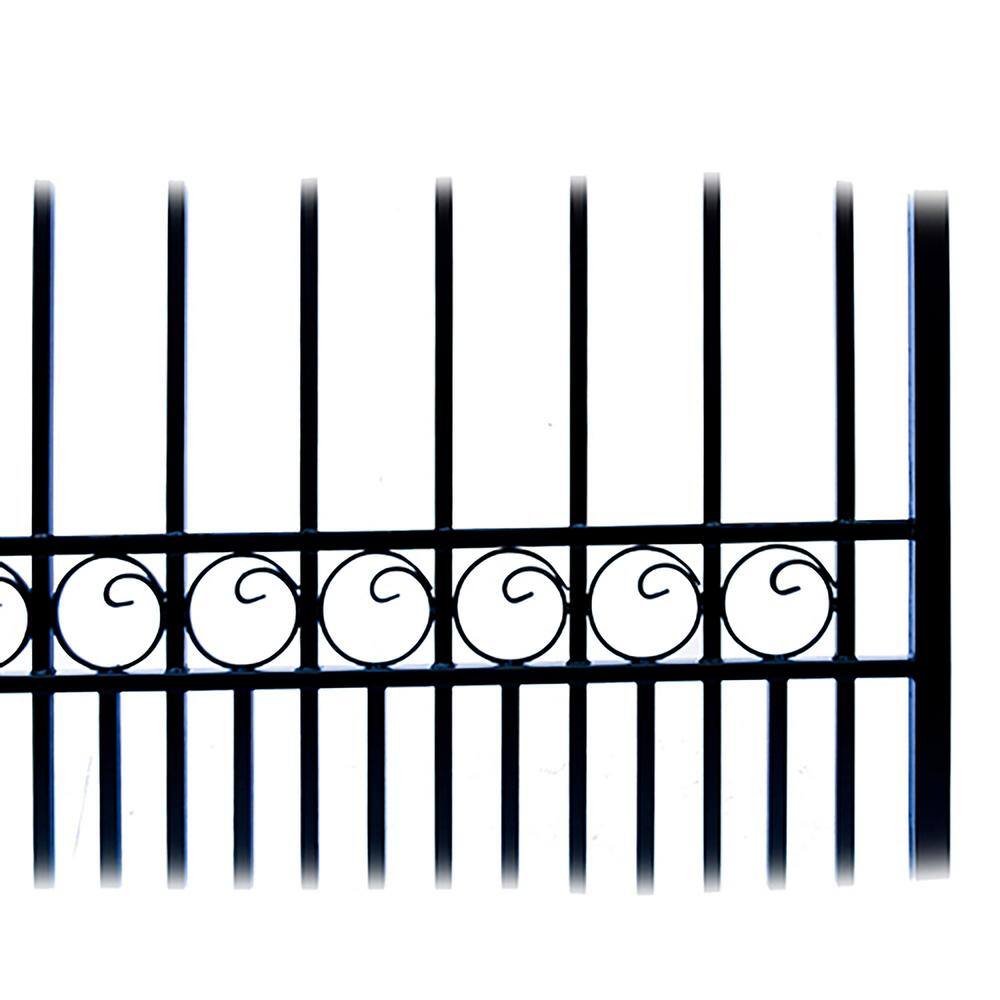 ALEKO 23 ft. x 6 ft. x 18 ft. Black Steel Single Sliding Driveway Gate Paris Style with Pedestrian Gate 5 ft. Fence Gate