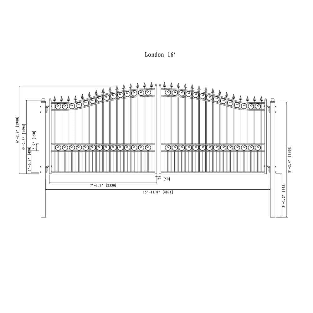 Enhance security and curb appeal with the ALEKO London Style Black Steel Dual Driveway Gate. Featuring a classic wrought iron look, this gate is built from galvanized steel and sealed with a durable powder coat to withstand weathering and prevent rust.