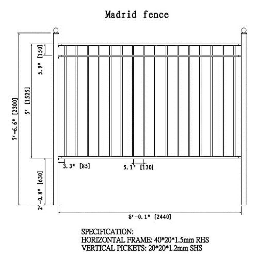 The ALEKO Madrid Iron Fence Panel adds timeless elegance and robust security to any property with its ornamental design. Crafted from galvanized steel, it's powder coated for superior durability and resistance to the elements, ensuring long-lasting beauty and function.