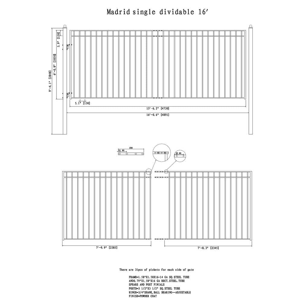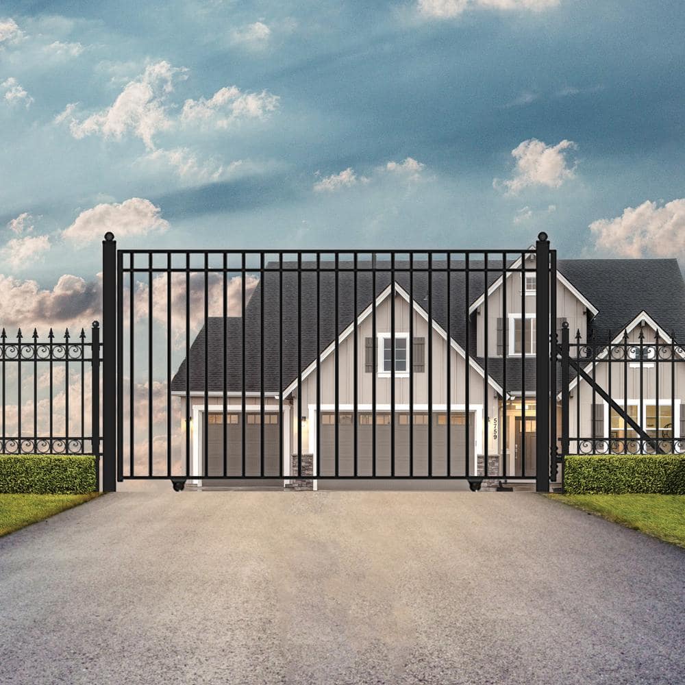 Transform your driveway with elegance and security using ALEKO's Madrid Style Black Steel Driveway Gate. This 16 ft. x 6 ft. wrought iron-inspired gate is powder-coated and galvanized, ensuring durability against rust and weather for years to come. With a powerful gate opener included, it's the perfect fusion of style and convenience.