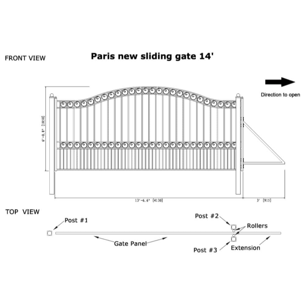 ALEKO Paris Style 14 ft. W x 6 ft. H Black Steel Single Slide Driveway with Gate Opener Fence Gate