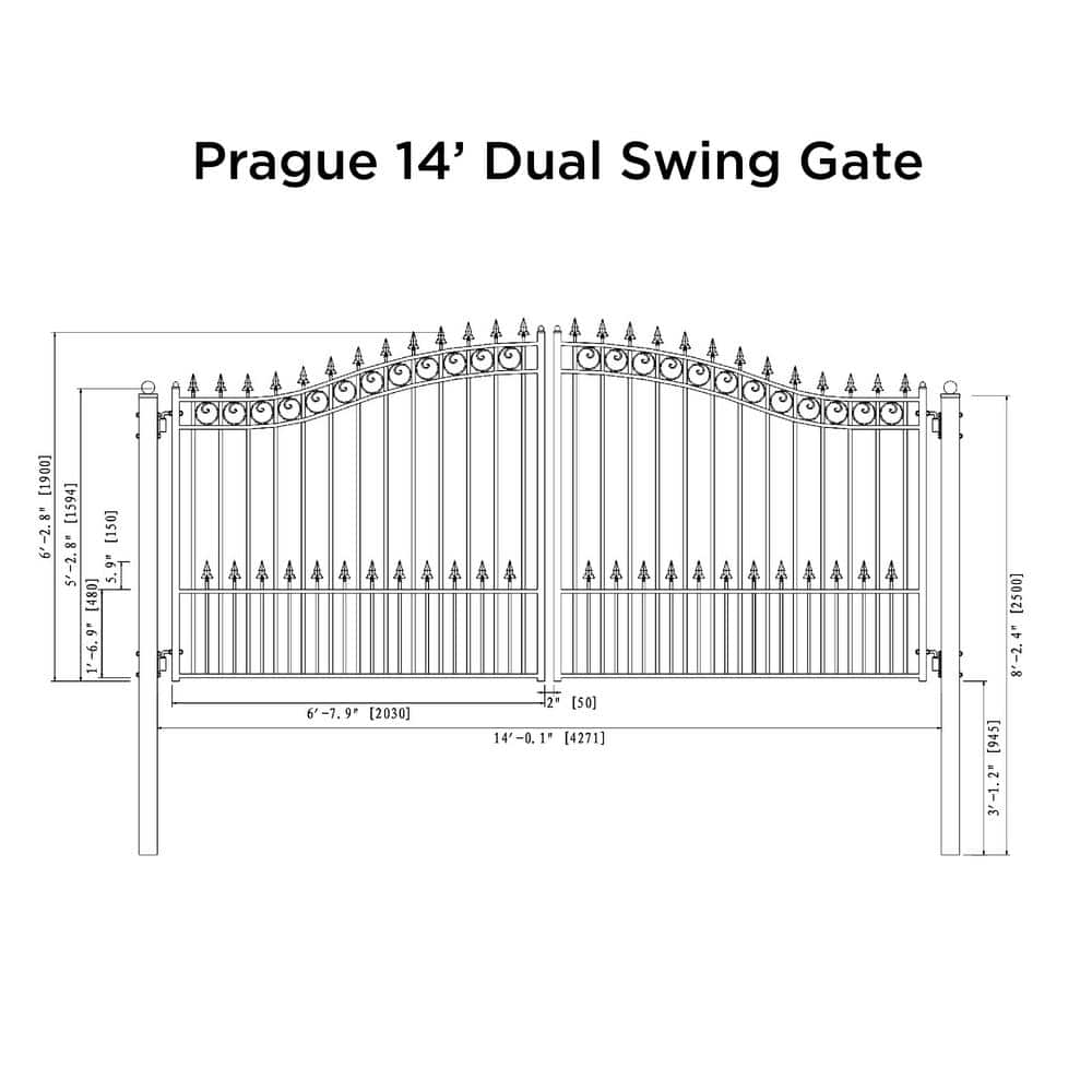 ALEKO Prague Style 14 ft. x 6 ft. Black Steel Dual Driveway Fence Gate