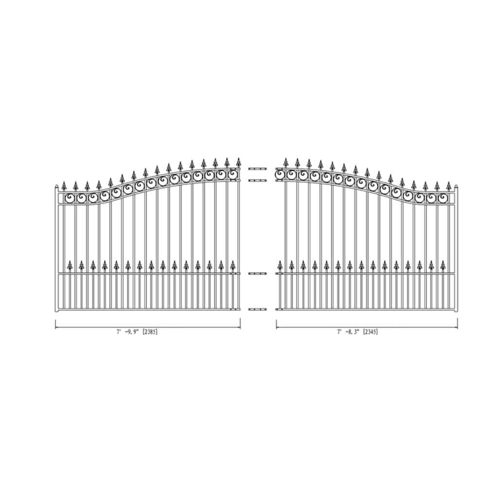 The ALEKO Prague Style Steel Driveway Gate offers a blend of style and security, making it an ideal choice for enhancing any driveway. Crafted from galvanized steel and finished with a durable powder coating, this gate resists rust and corrosion for long-lasting use. Designed for ease of installation, it includes the necessary posts and hinges, eliminating the need for welding.