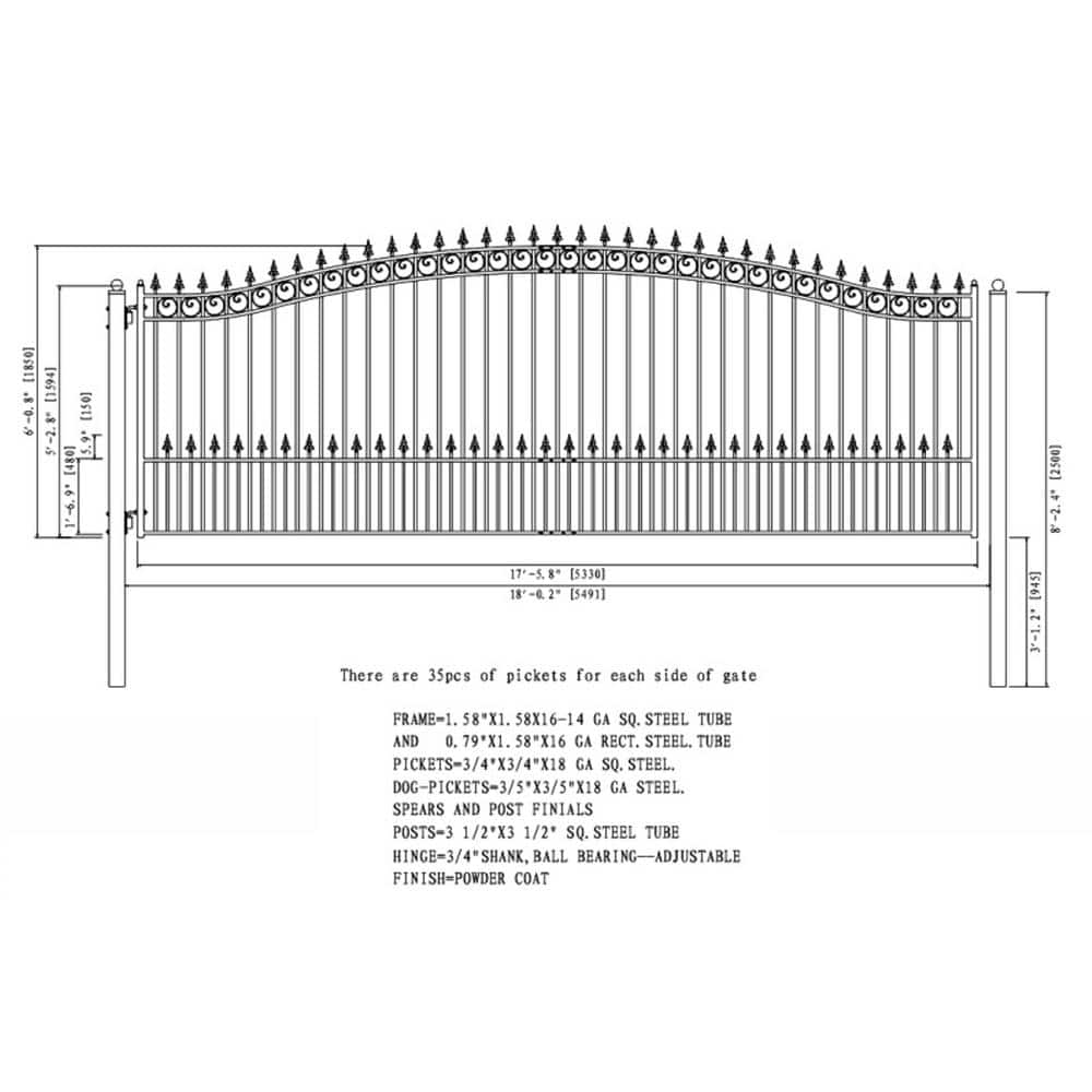 ALEKO Prague Style 18 ft. x 6 ft. Black Steel Single Swing Driveway Fence Gate