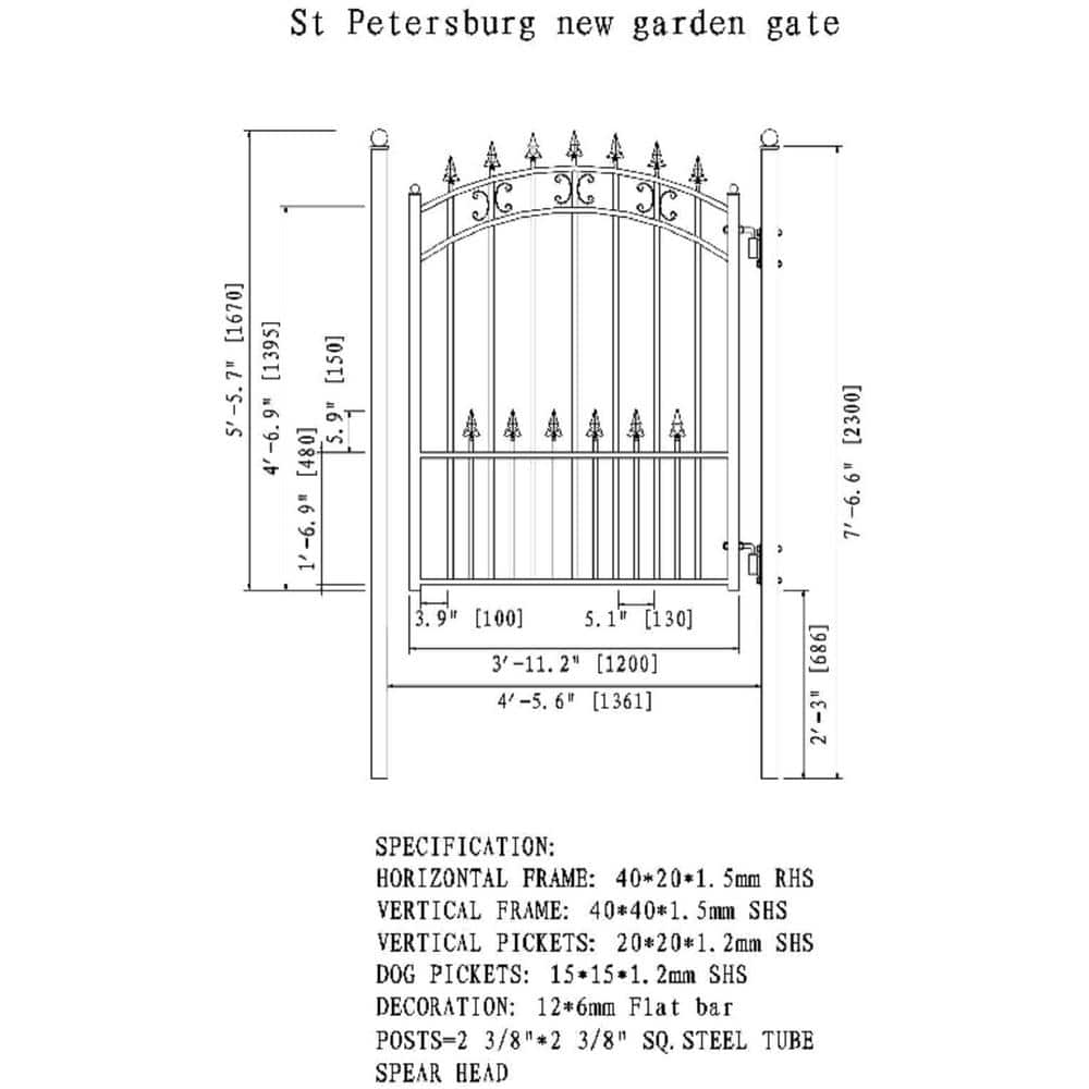 - Design: Classic St. Petersburg style with an elegant arched top and pointed picket tops.