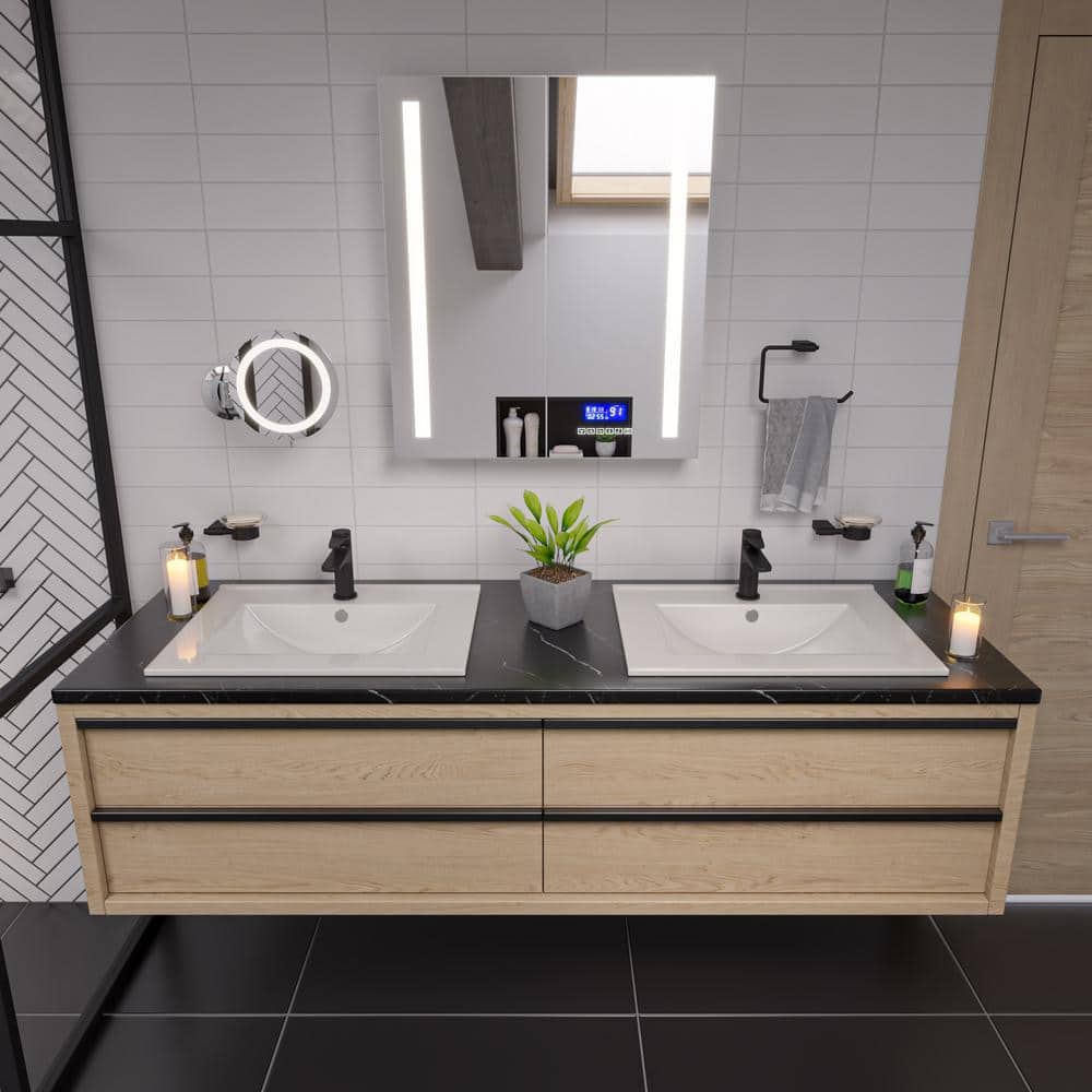 Step into sophistication with the ALFI BRAND LED Medicine Cabinet, redefining your bathroom's ambiance. Its sleek, frameless design paired with intelligent features like no-fog mirrors and Bluetooth audio brings a touch of modern luxury to your daily routine. Envision this cabinet as a chic focal point above your vanity, harmonizing technology with style. Elevate your space and transform functionality into a lavish experience.