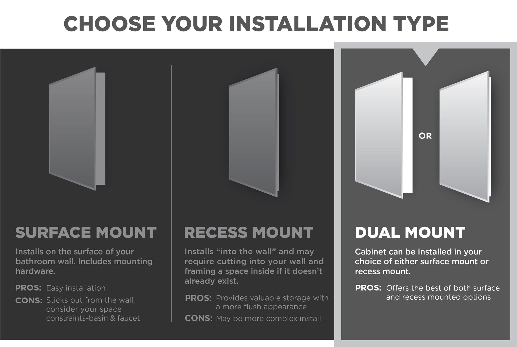 Q: What is the recommended clearance space for installation? A: It is recommended to leave a 3-inch clearance from light fixtures above and 3 inches from fixtures below, such as a faucet, to ensure the cabinet functions properly.
