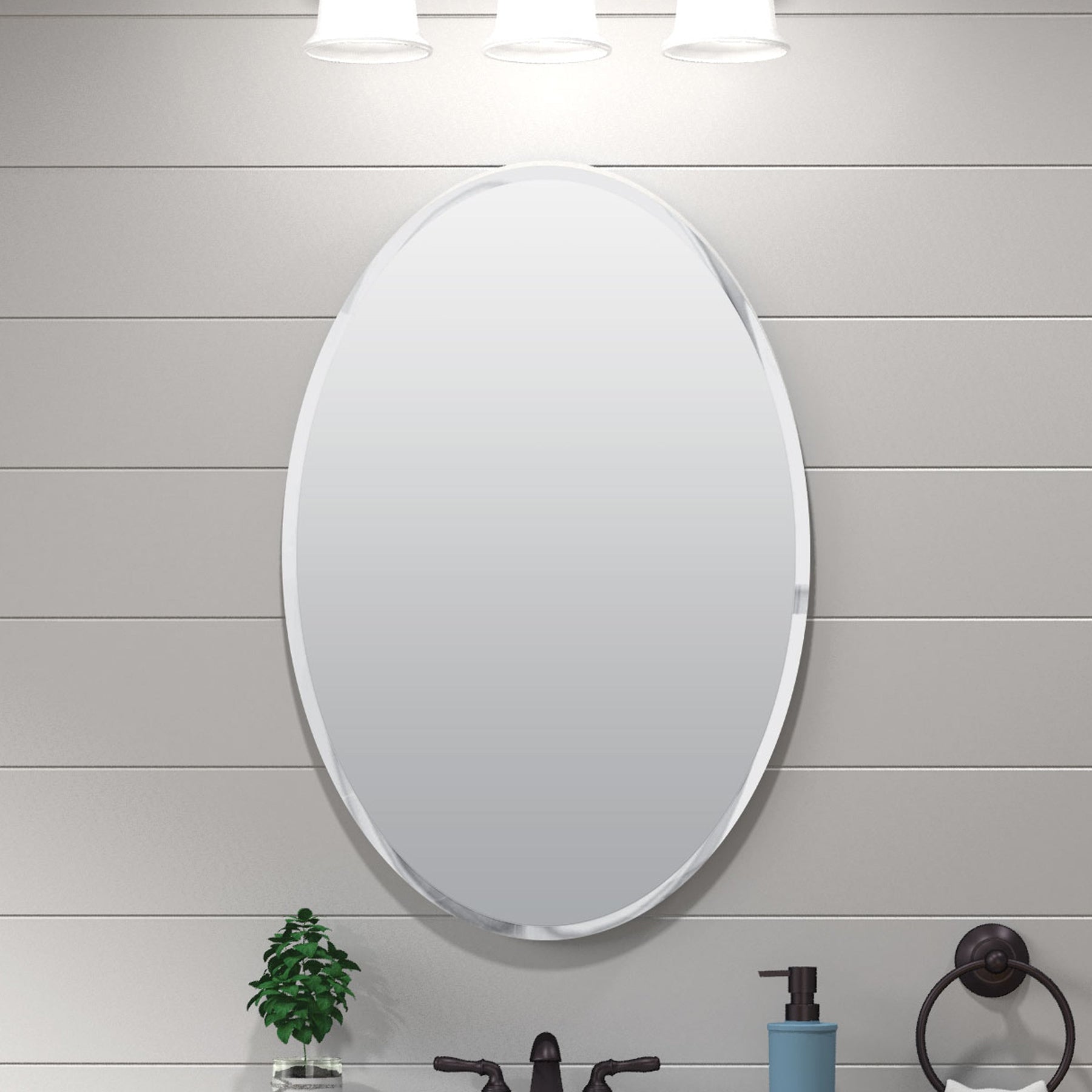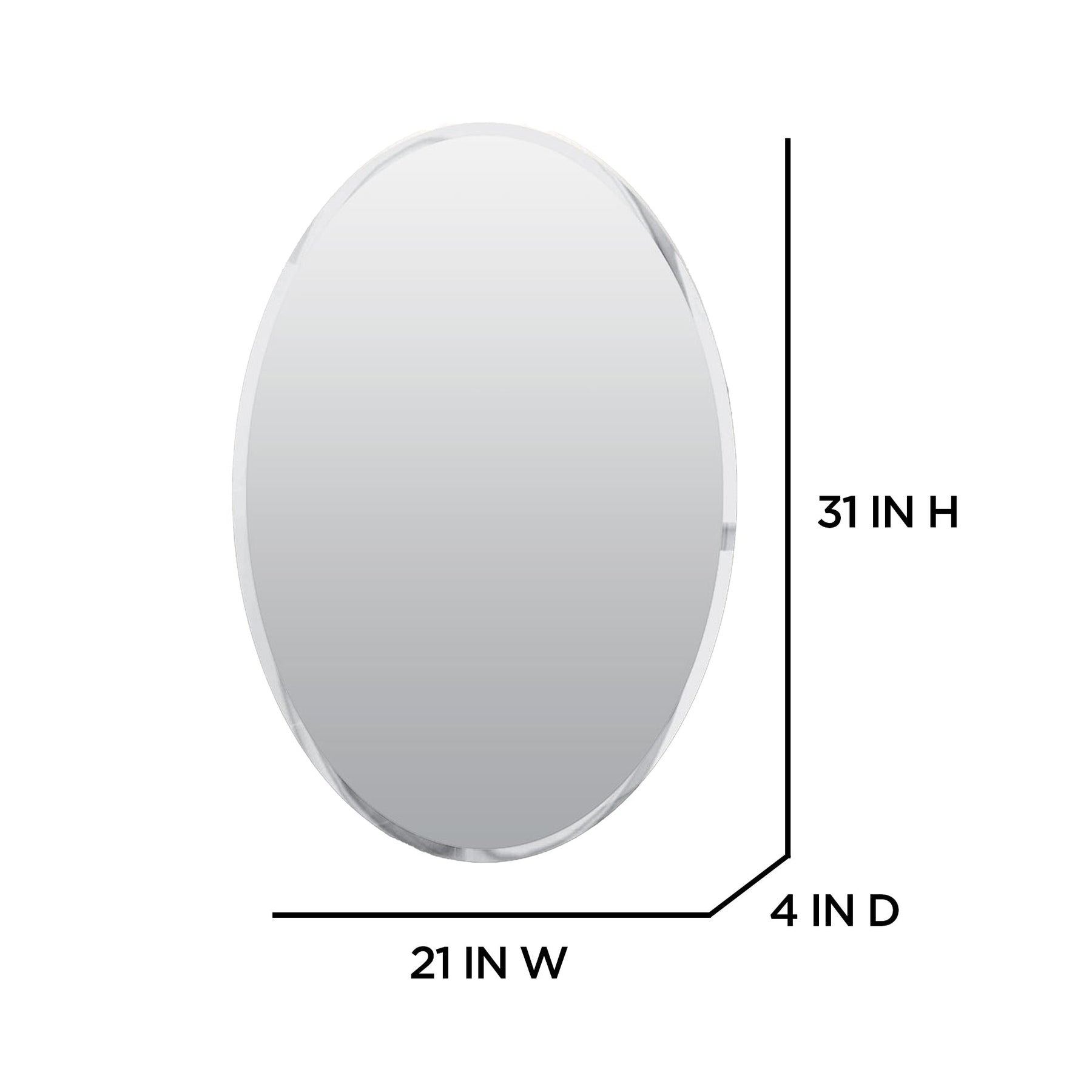 Transform your bathroom into a sanctuary of elegance with this stunning oval frameless medicine cabinet. Its luxurious, beveled mirror door captures and reflects light beautifully, creating an illusion of spaciousness and serenity. Install it above a sleek vanity to perfectly complement contemporary fixtures or feature it as a stylish counterpoint in a more traditional space. An absolute essential for those who seek both practicality and style, this cabinet's minimalist design is the epitome of refined living.