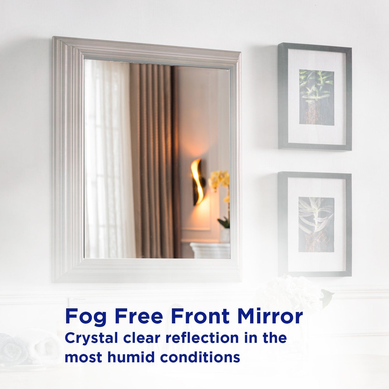 • Fog-Free Mirror: Keeps mirror crystal clear for a pristine view even after hot showers.