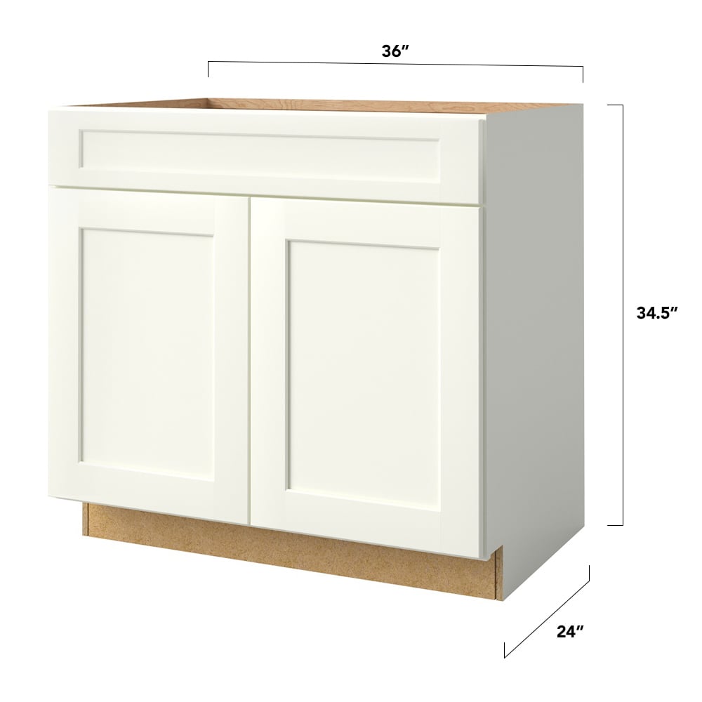 Infuse your kitchen with a touch of minimalist luxury with the Aveley Linen Sink Base Cabinet. Its bright white finish and graceful Shaker lines create a stunning canvas for vivid colors and diverse textures. The standout full overlay doors provide a seamless appearance that enhances any modern decor. Position it under a chic, modern sink with a vibrant backsplash to complete a look of understated opulence. With its quiet confidence, this cabinet becomes a staple for elegant, modern interiors that celebrate both style and function.
