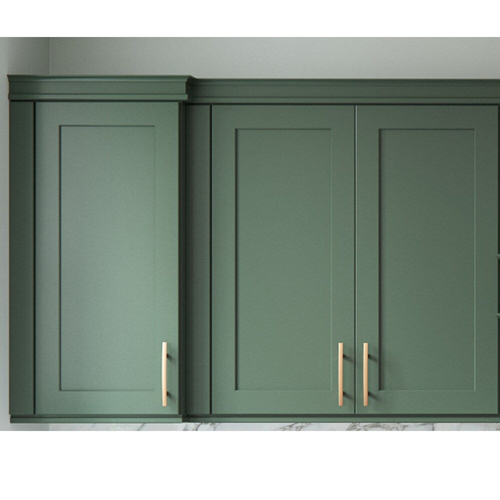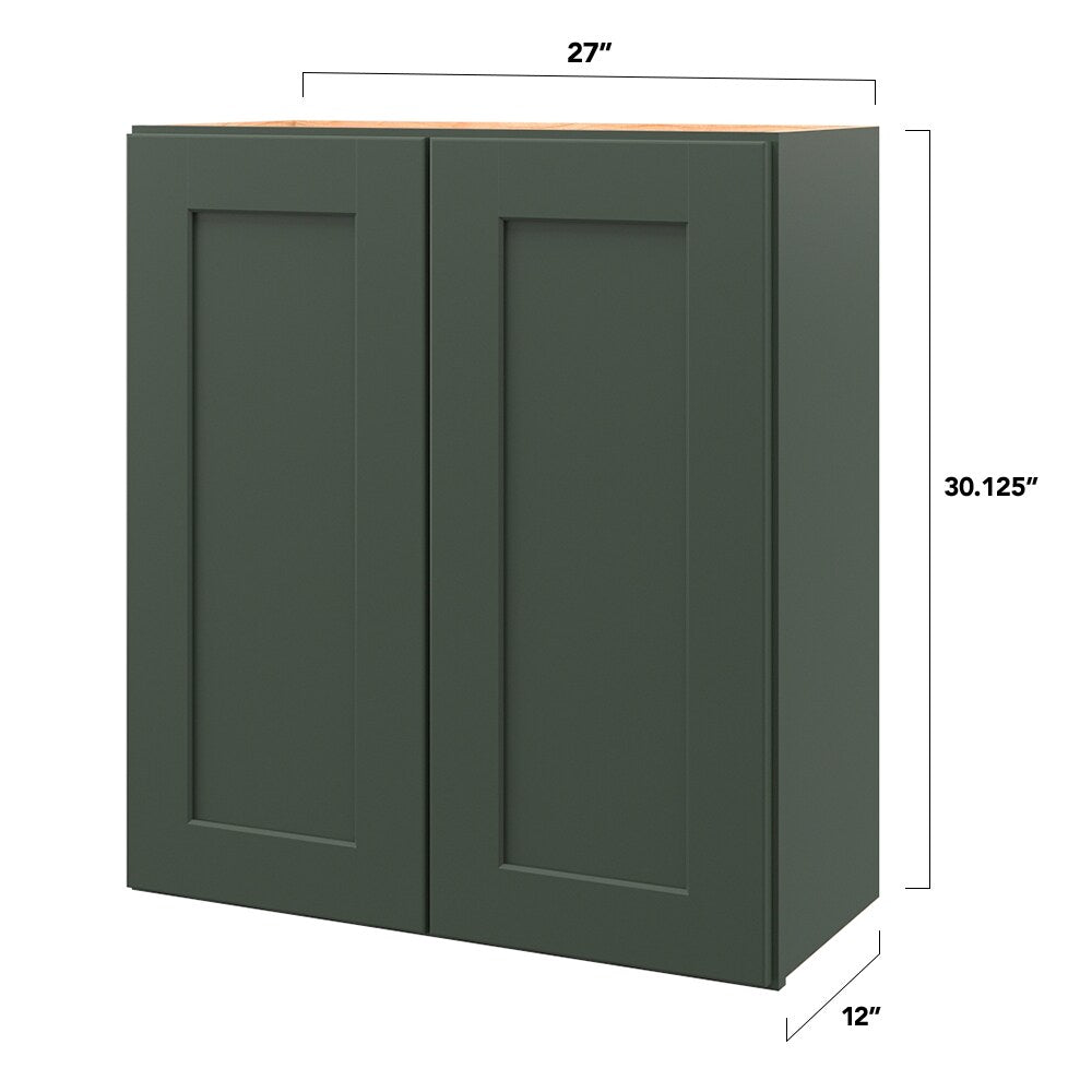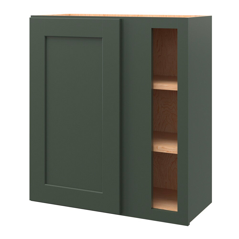 Elevate your kitchen or bathroom with the allen + roth Galway Sage Blind Corner Wall Cabinet. This fully assembled cabinet features a flat panel Shaker style, providing a seamless blend of modern elegance and functionality. Constructed with a painted finish on hard woods and engineered materials, it's designed for durability and consistent aesthetic appeal.