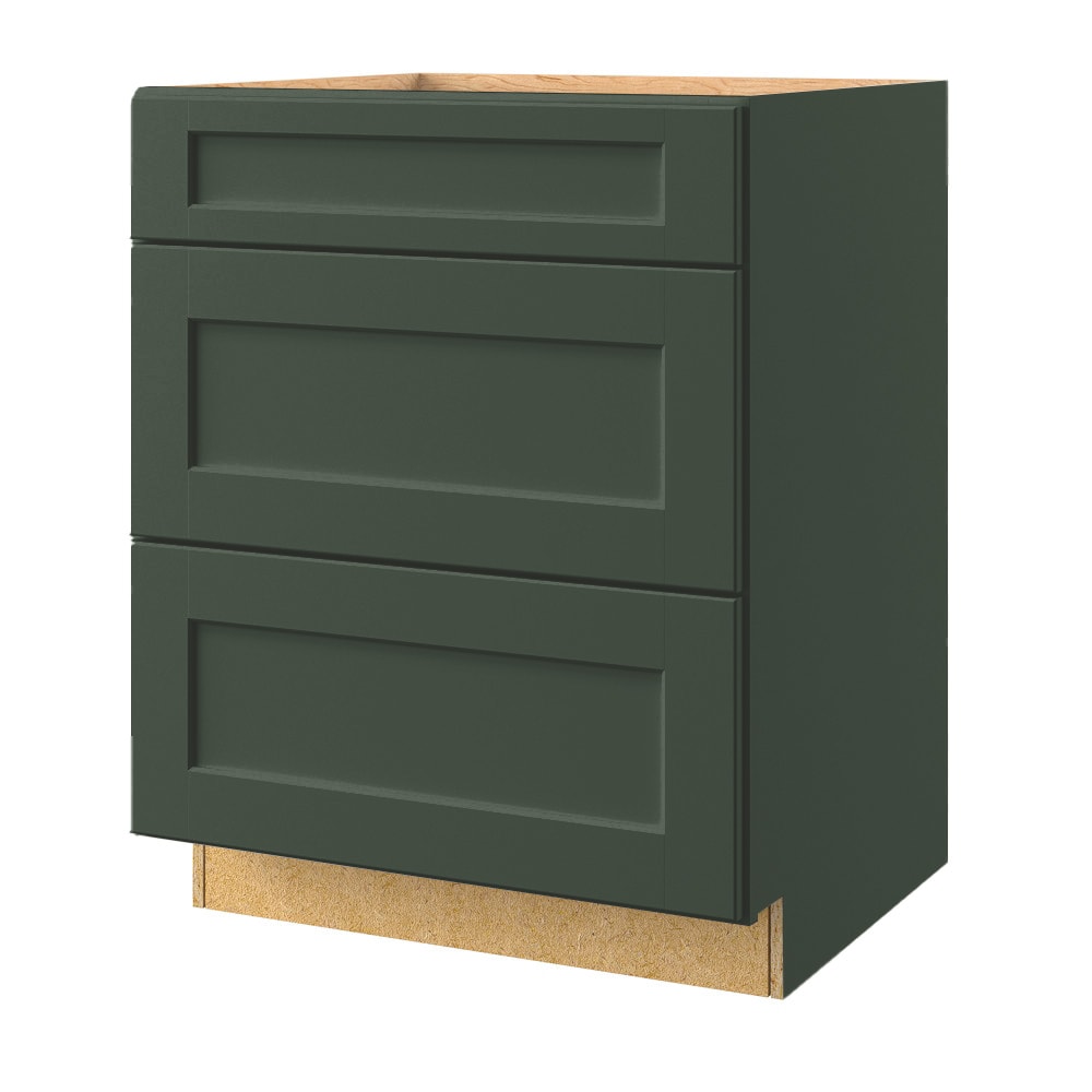 The Galway Sage 3-Drawer Base Cabinet by allen + roth brings a touch of elegance and nature into your home with its soothing dark green finish. Crafted for modern living, it combines hardwood and engineered materials for superior durability and features soft-close drawers for seamless functionality. Ideal for professionals and DIYers alike, this cabinet enhances organization without compromising on style.