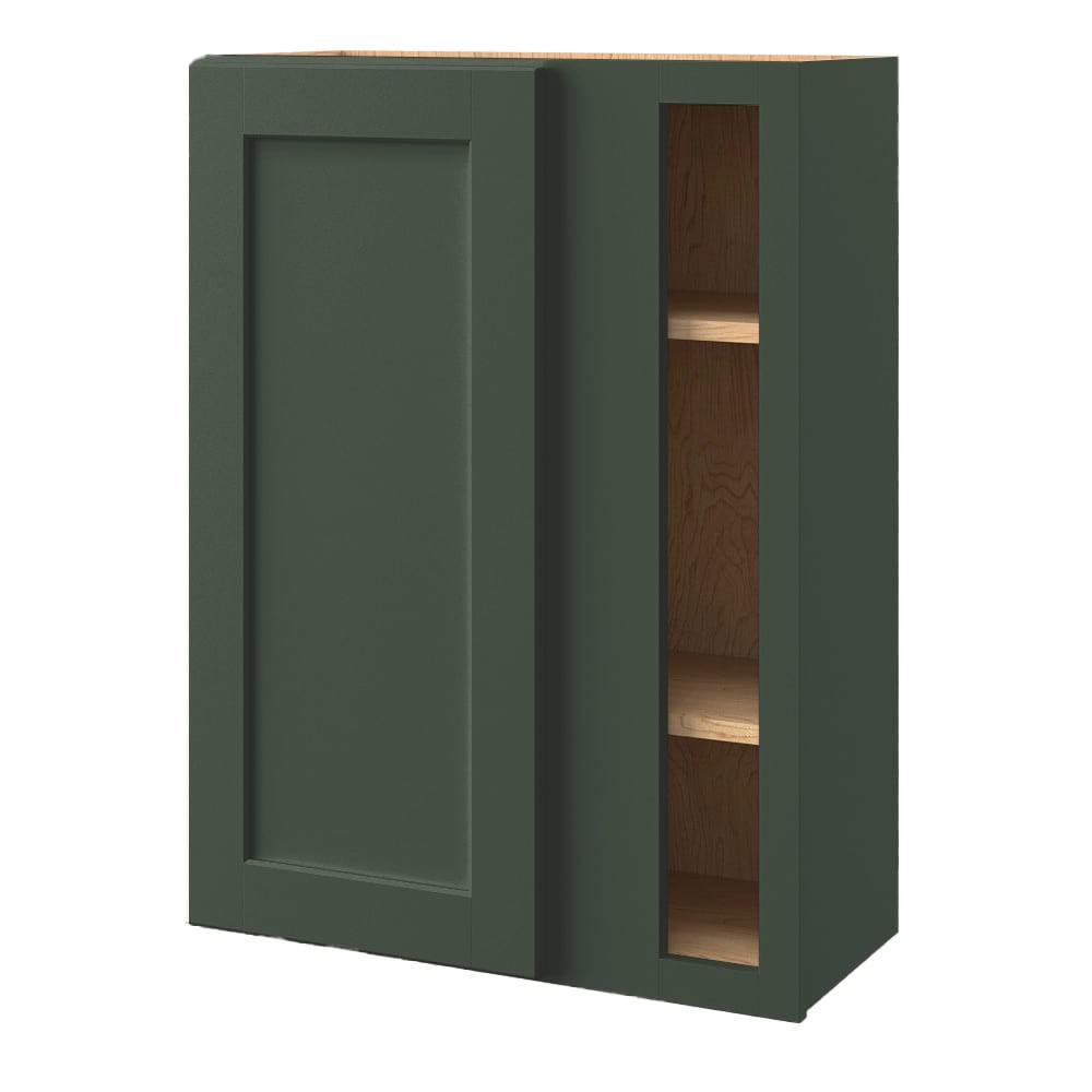 Enhance your kitchen design with the allen + roth Galway Sage Blind Corner Wall Cabinet, combining sophisticated Shaker style with deep green coloring. This fully assembled cabinet is expertly crafted from wood and MDF, offering superior durability and seamless aesthetics thanks to its soft-close doors and full overlay construction.