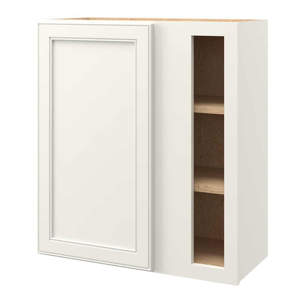Transform your kitchen with the McKeller Linen Blind Corner Wall Cabinet, where modern design meets timeless elegance. Its flat panel square style and pristine white linen finish invite a breath of sophistication into any space. Perfect for maximizing underutilized corners, this cabinet can be styled with colorful glassware or delicate china to accentuate its seamless aesthetic. Essential to creating a luxurious and functional kitchen, it's the epitome of style and utility merging gracefully.