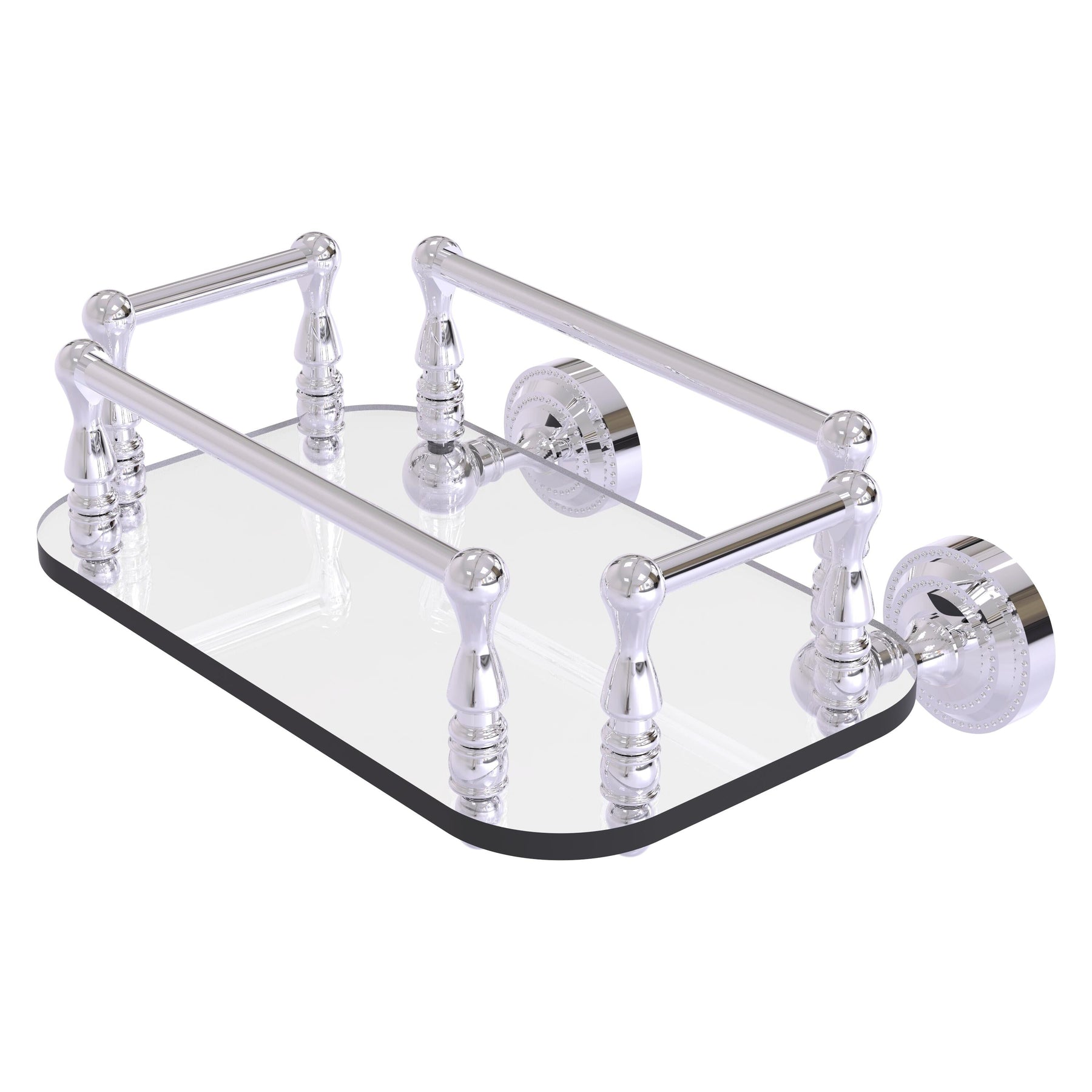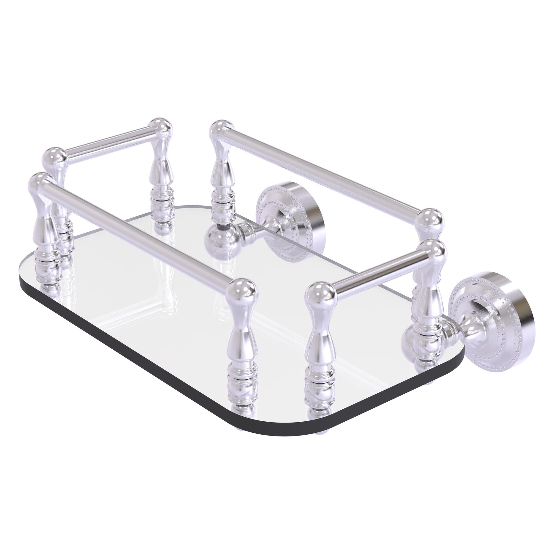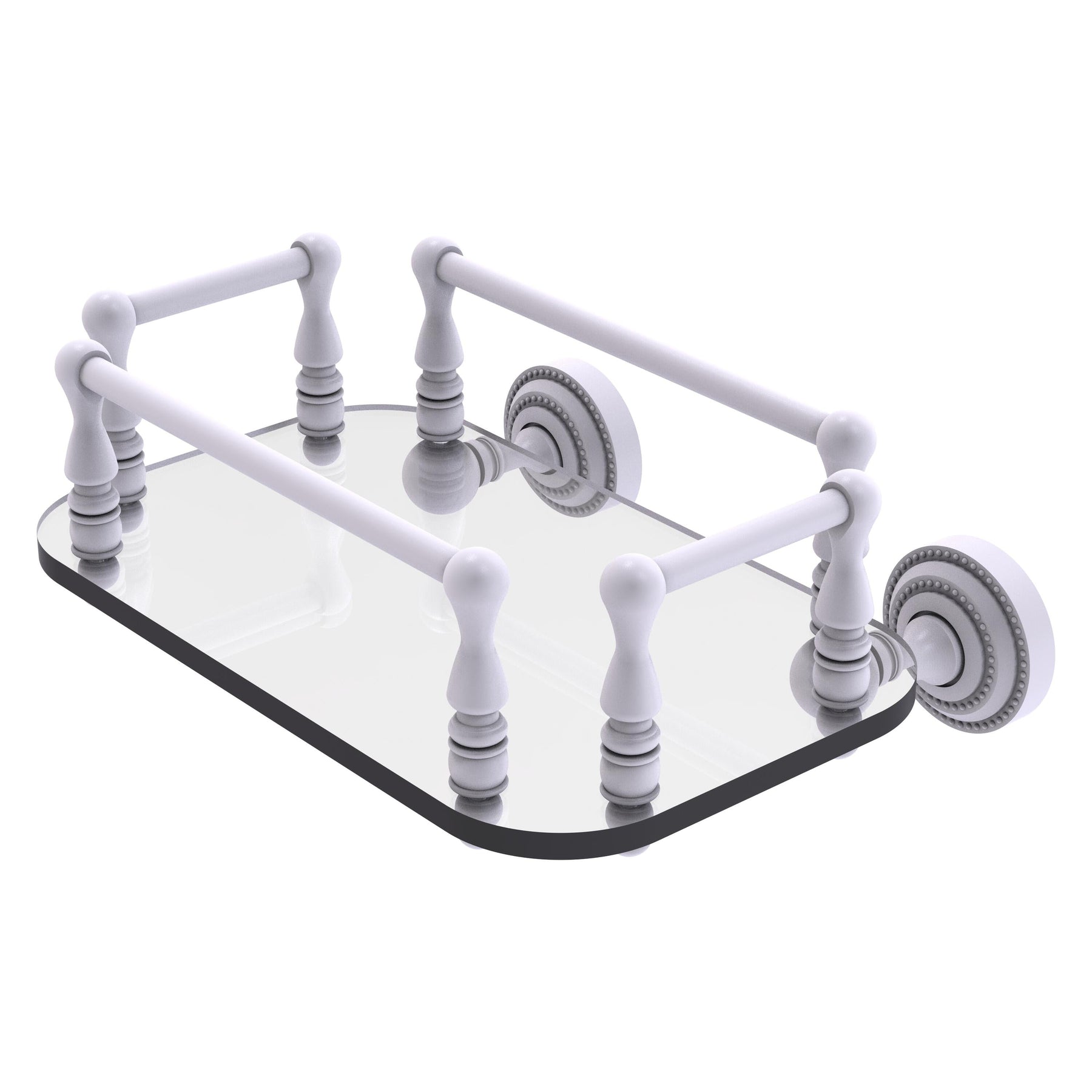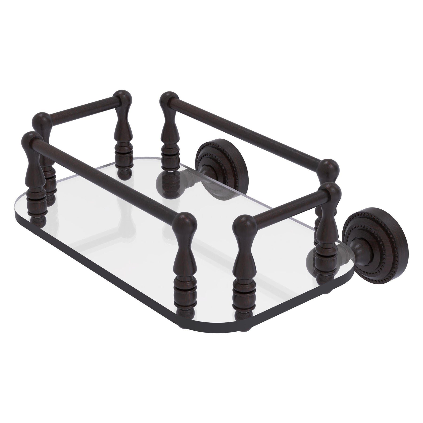 Elegant wall-mounted tray with solid brass rails and a clear glass base to hold guest towels or a tissue box. Concealed-screw installation delivers a clean look while the corrosion-resistant designer finish ensures long-lasting performance.