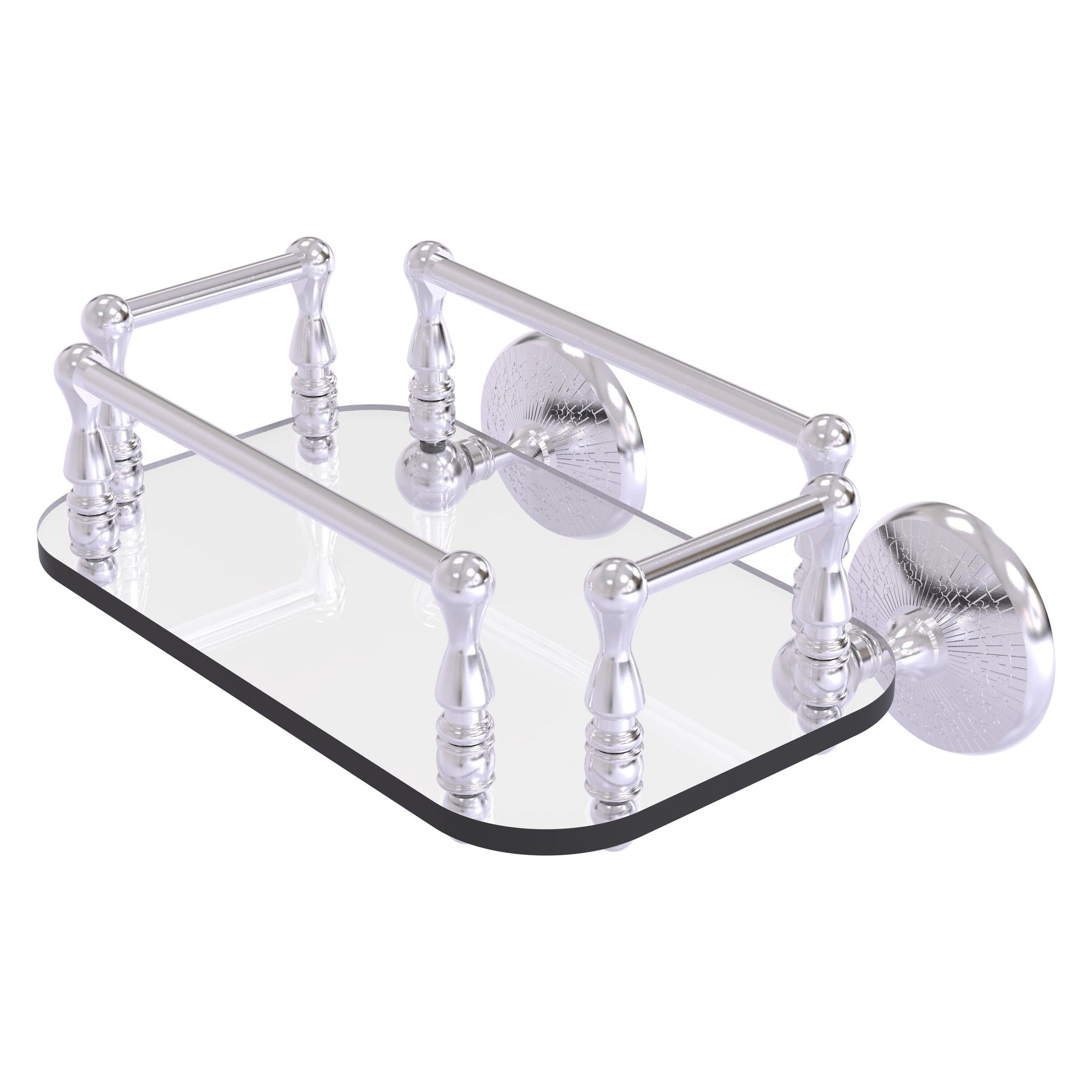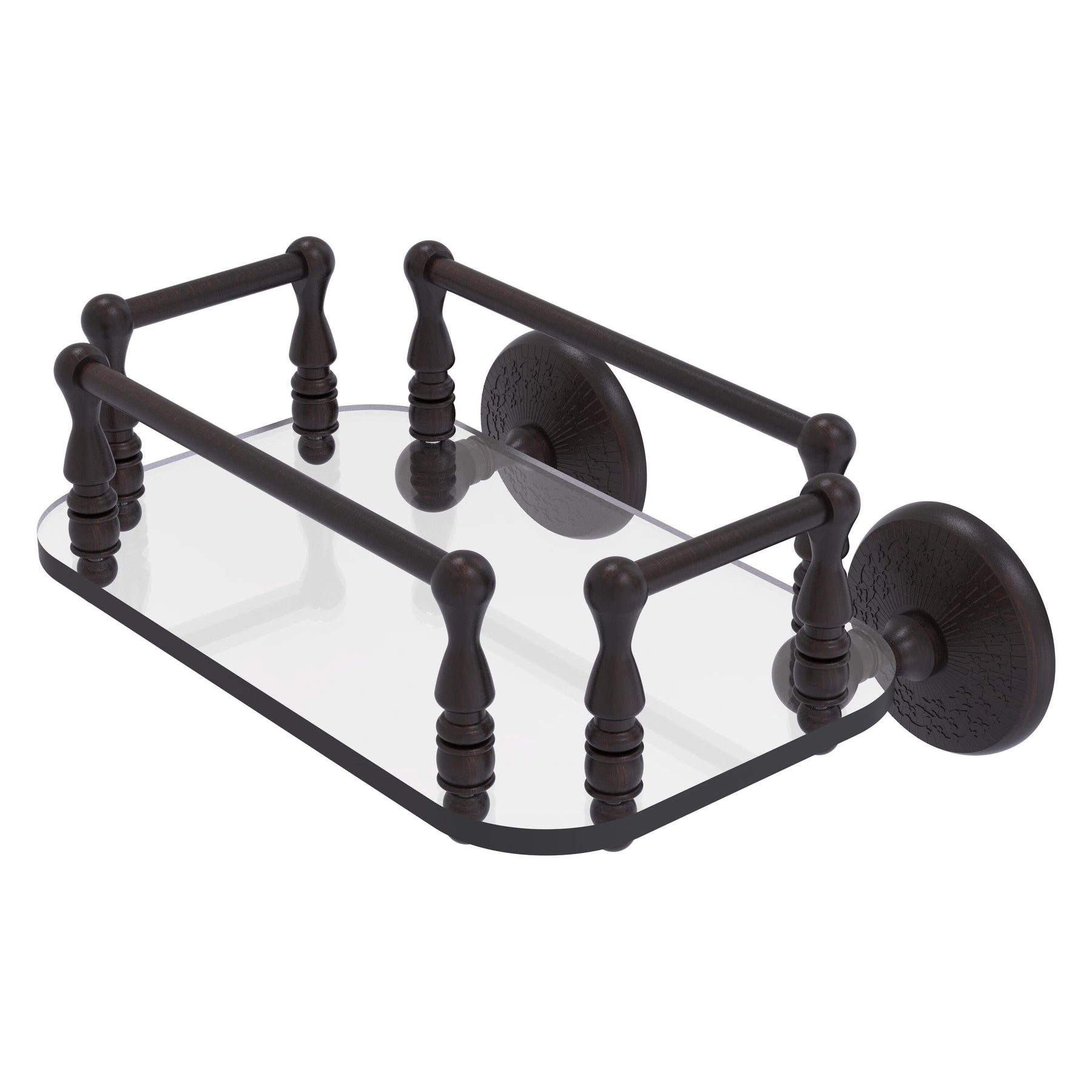 Elegant wall-mounted tray crafted with solid brass rails and a tempered glass base, designed to hold standard guest towels or a tissue box. The Monte Carlo collection blends contemporary lines with classic detailing and a durable designer finish for corrosion-free performance.