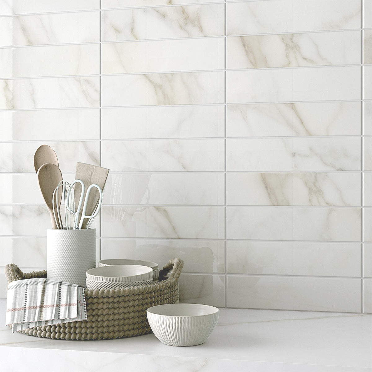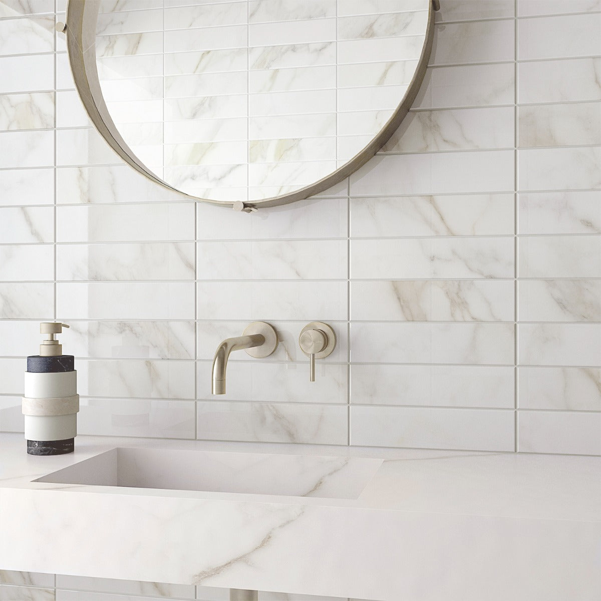 Transform your space with the luxurious Amalfi Calacatta Subway Tile today.