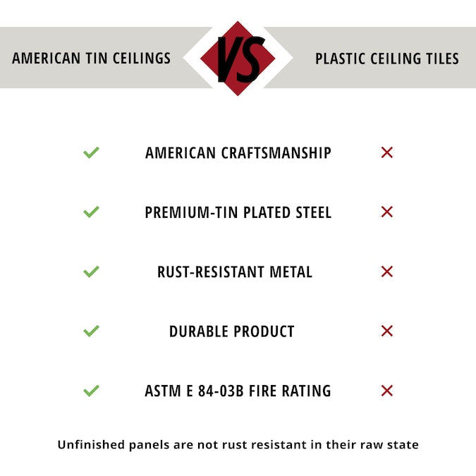 Enhance your ceilings with these elegant 2-ft x 2-ft stainless steel ceiling tiles, offering the perfect combination of aesthetic charm and practicality. Rust-resistant and easy to install, these tin-plated steel tiles bring Ottoman-inspired opulence to any space, making them ideal for both professional contractors and DIY enthusiasts.