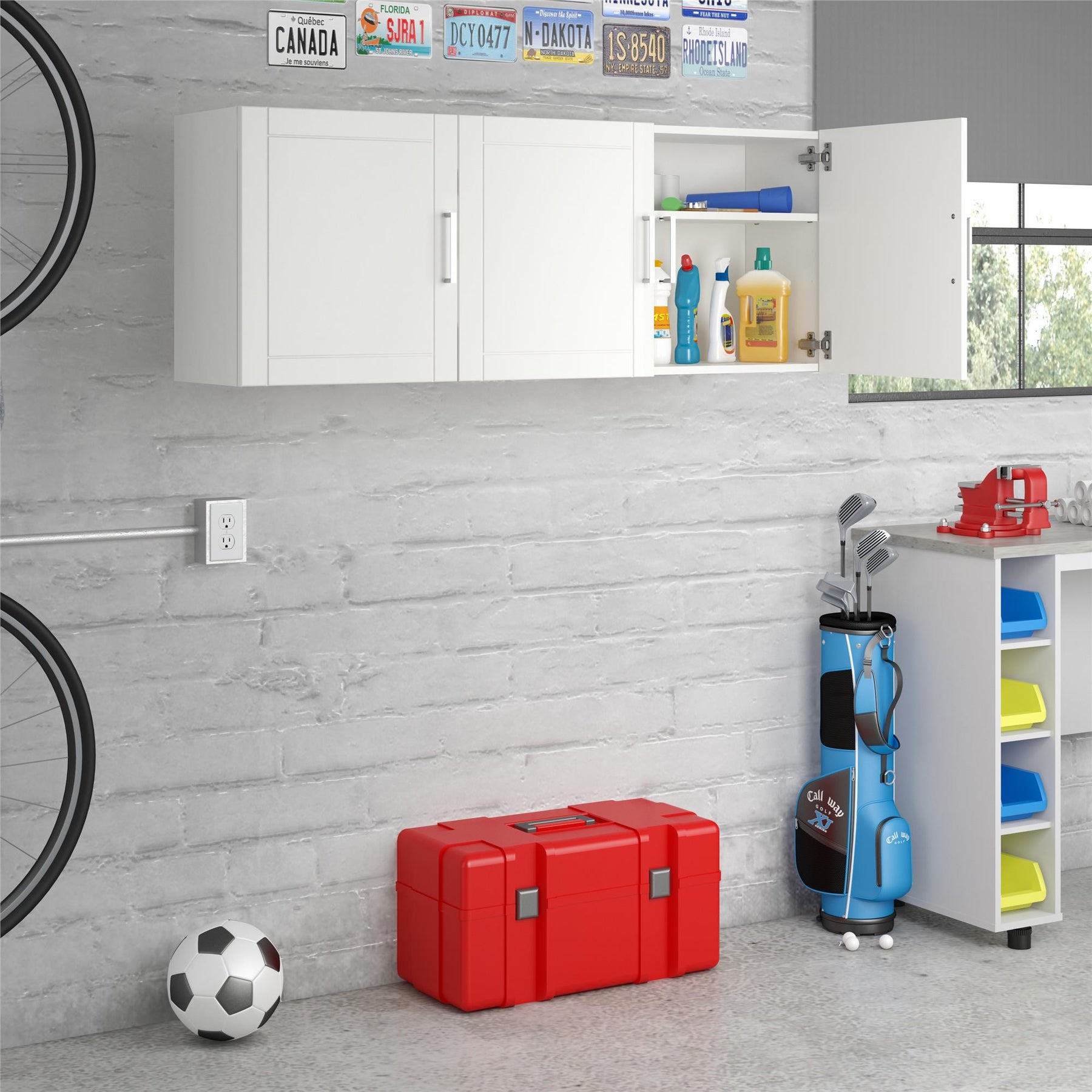 Embrace a harmonious blend of functionality and style with the Callahan Wall-mounted Cabinet. Its sleek white finish and shaker-style doors lend an air of sophistication to your garage, transforming an ordinary utility space into a well-organized sanctuary. The adjustable shelving provides versatility, ensuring your tools and supplies are elegantly concealed yet easily accessible. More than just storage, this cabinet is your canvas for crafting a clutter-free, luxurious workspace.