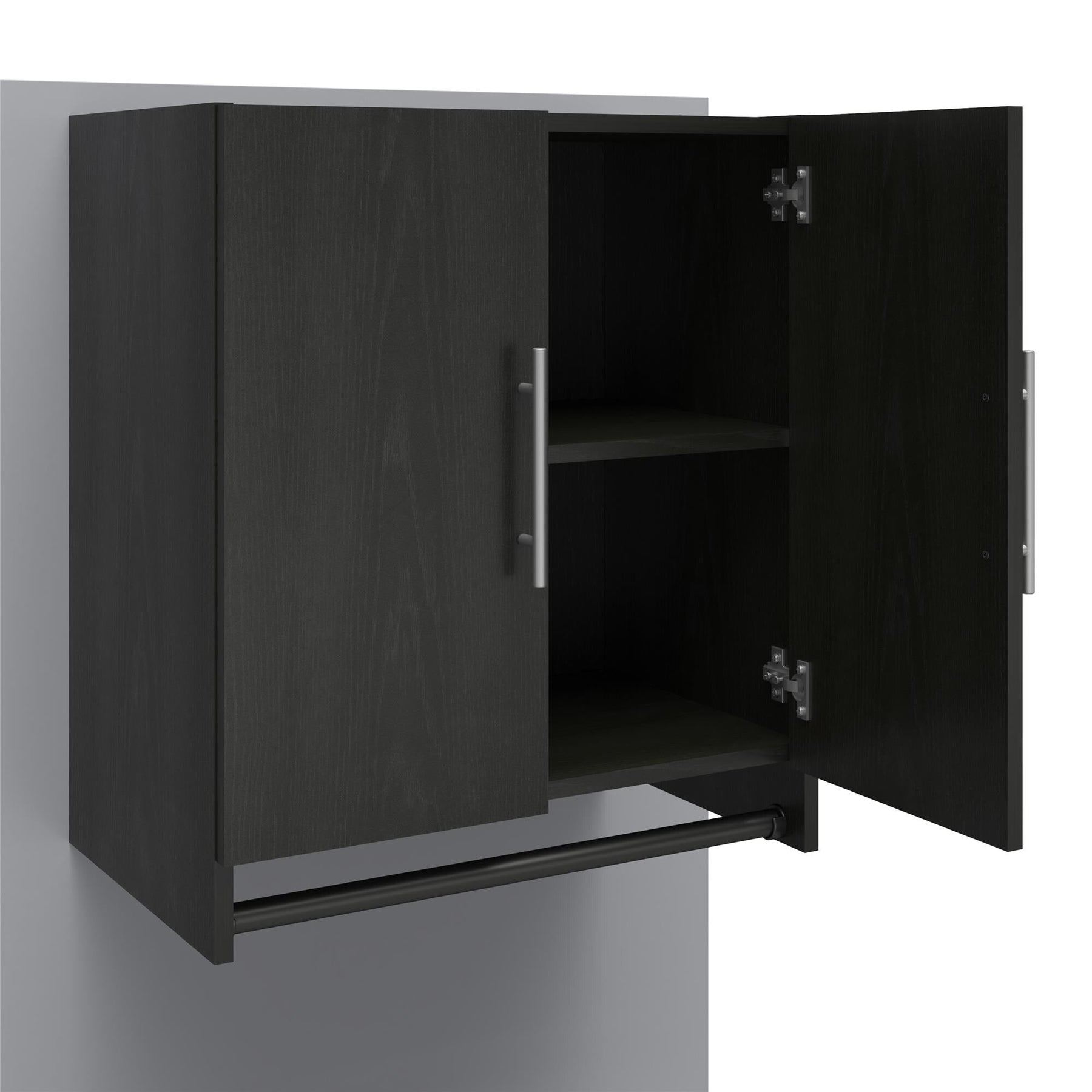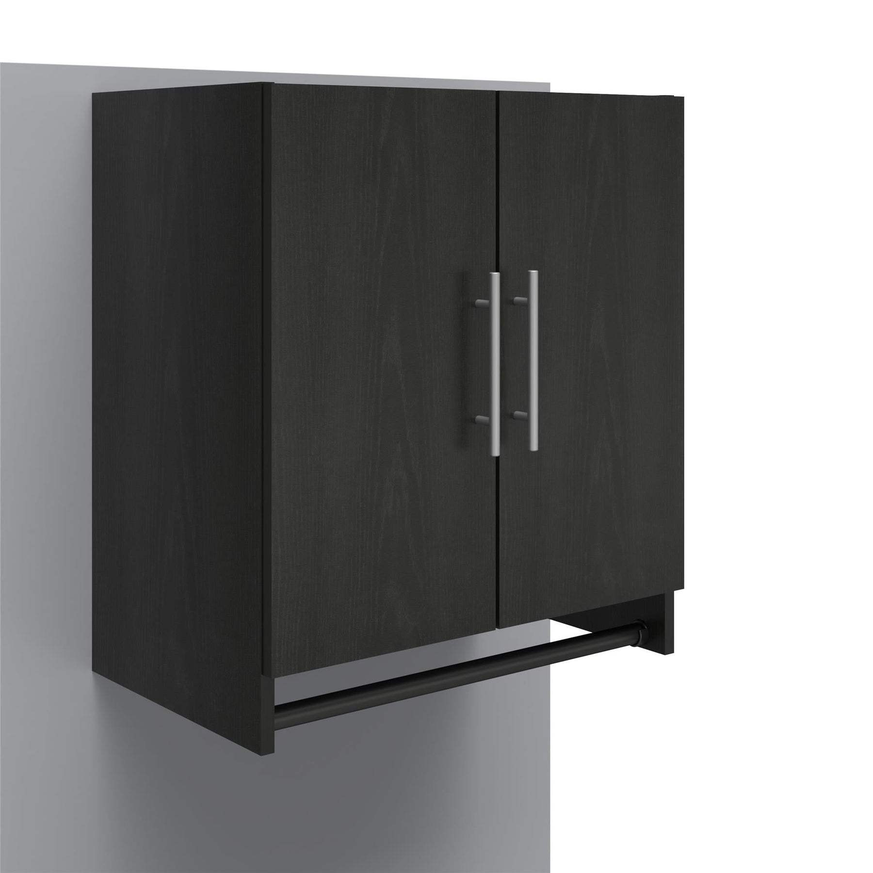Maximize your garage storage and organization with the Ameriwood Camberly Wall-Mounted Garage Cabinet. Crafted from laminated MDF and particleboard, this sturdy cabinet features an innovative hanging rod and a sleek, modern black finish to complement any workspace.