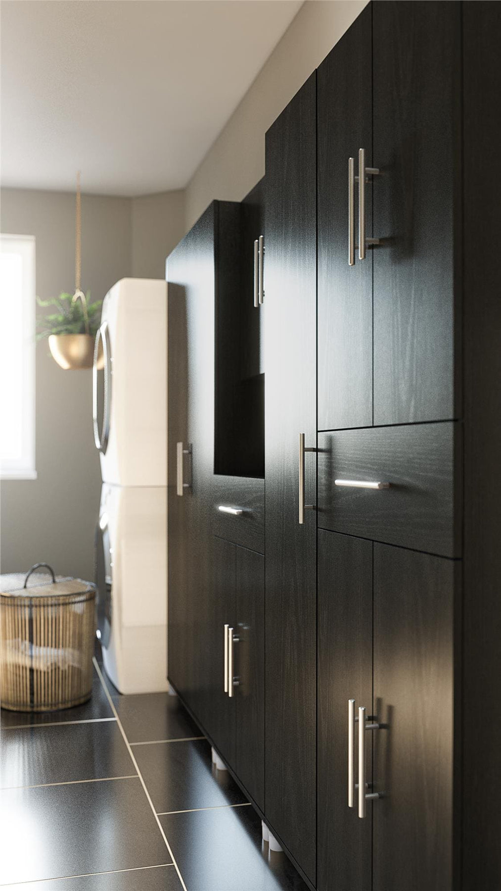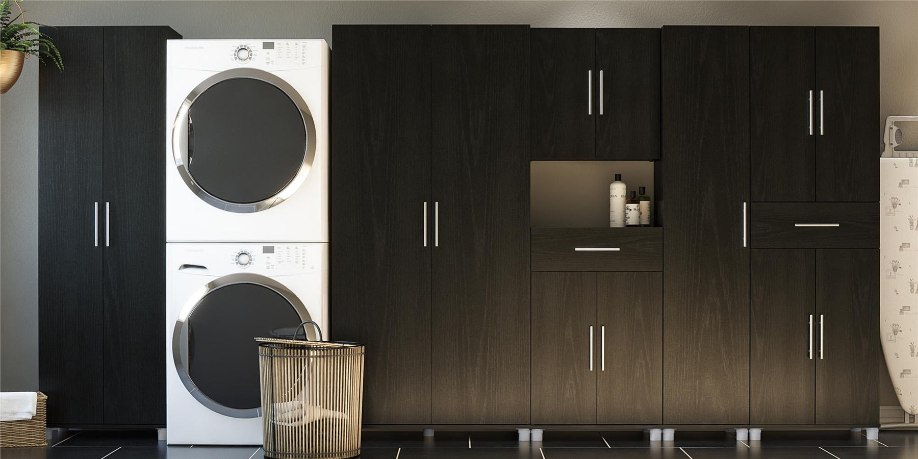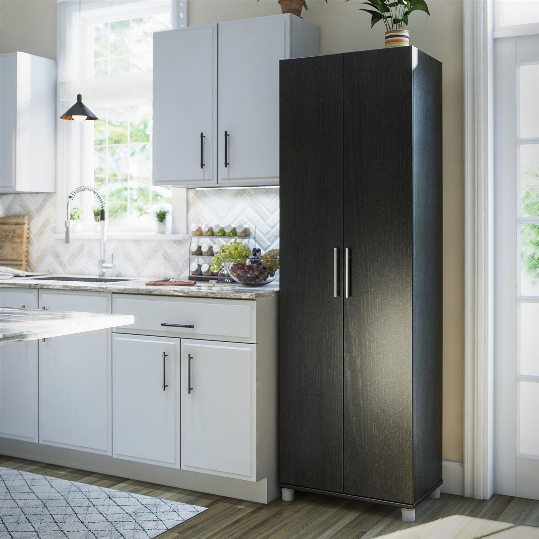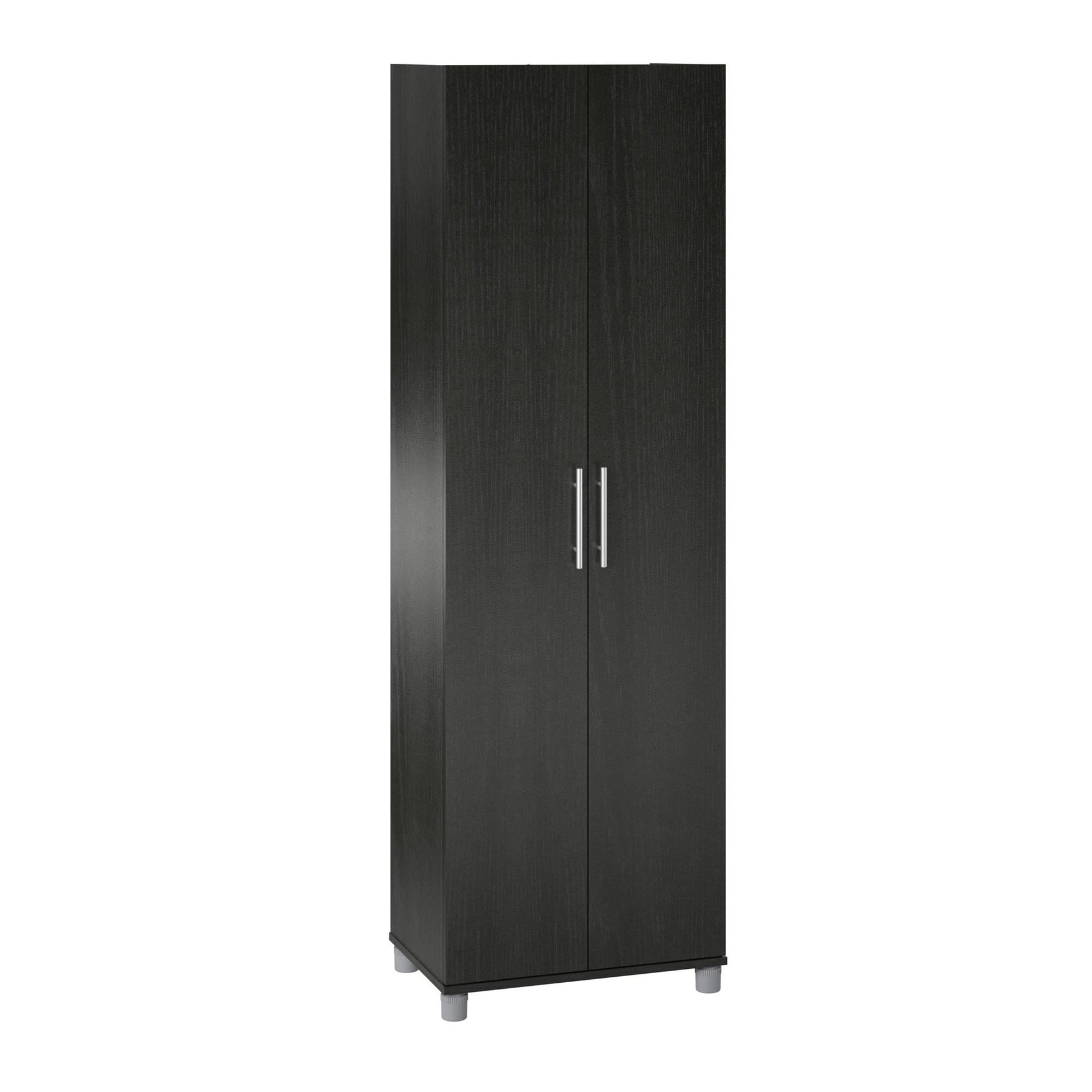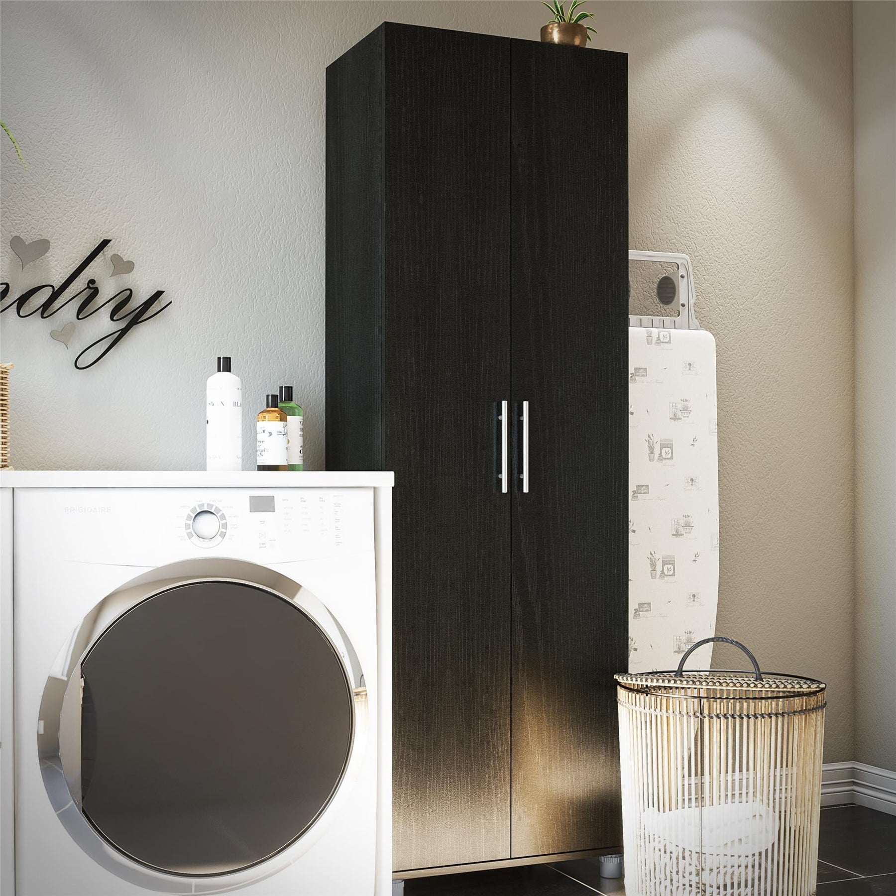 The Ameriwood Home Camberly 24" Utility Storage Cabinet provides a sleek storage solution for any room. With its black oak finish and satin nickel hardware, it seamlessly fits with most decors while offering adjustable shelves for customizable organization. Ideal for laundry rooms, kitchens, or garages, this cabinet enhances storage without compromising on style.
