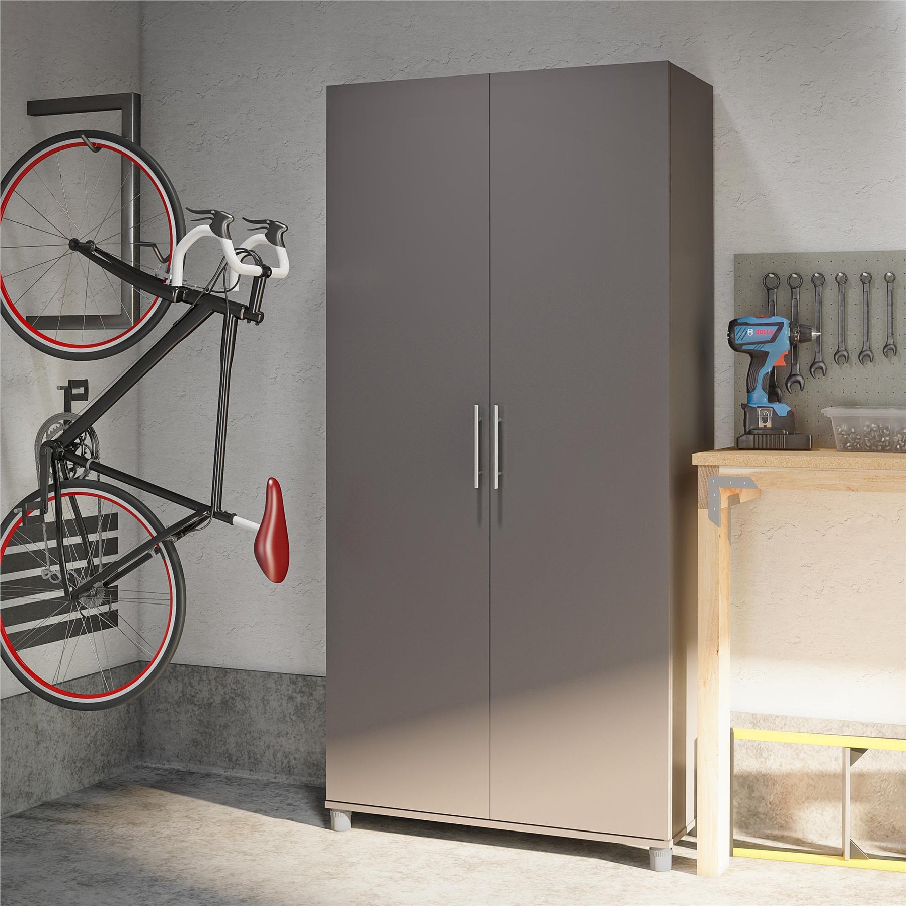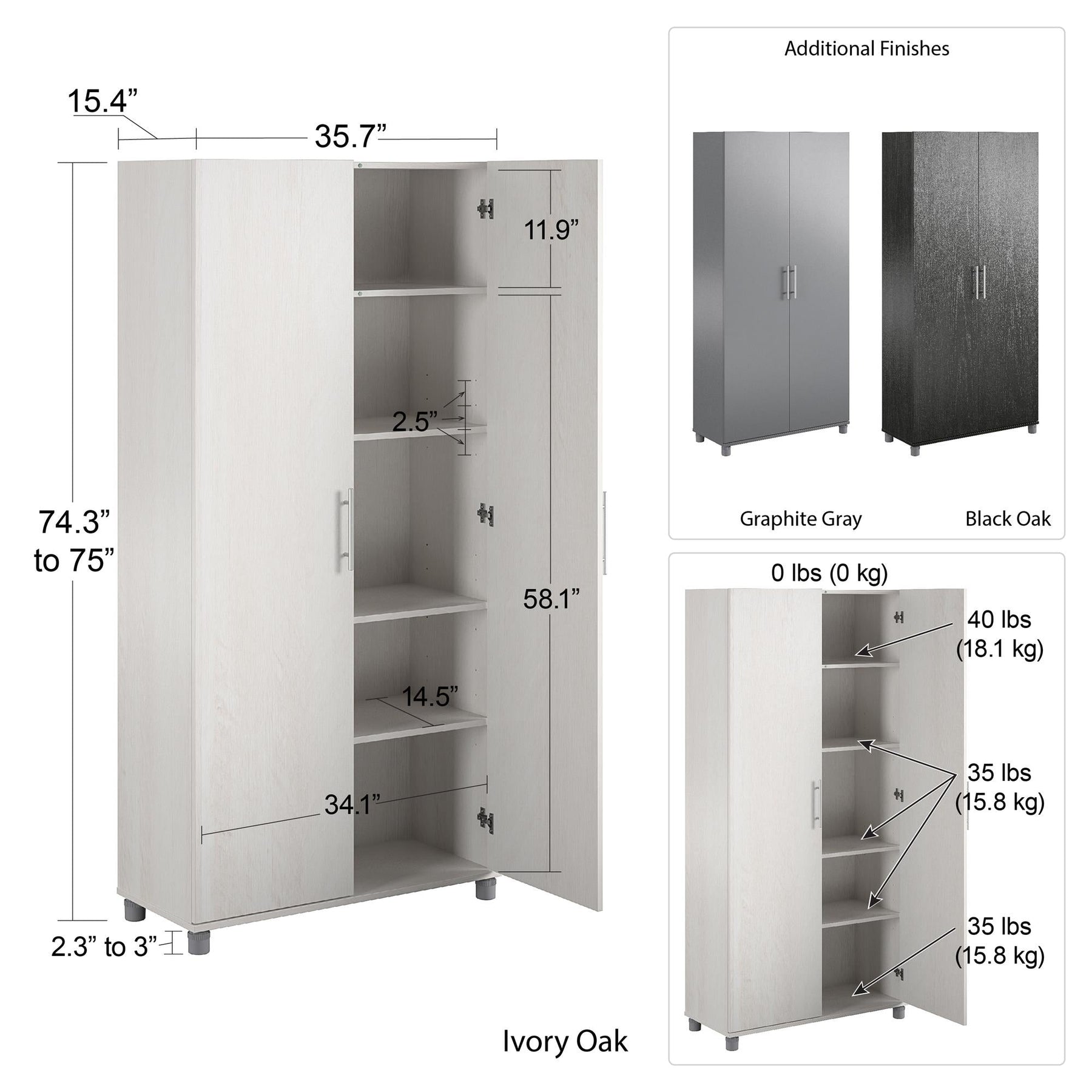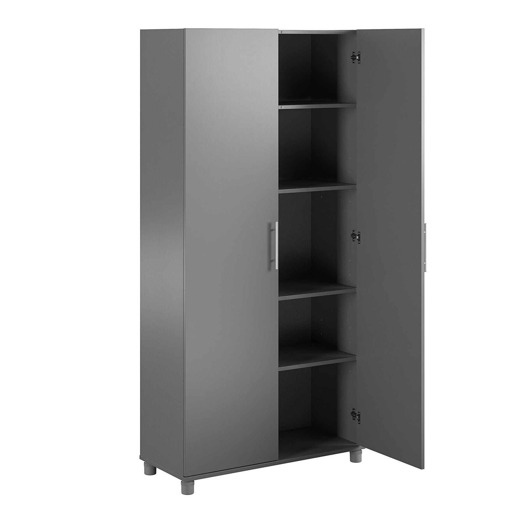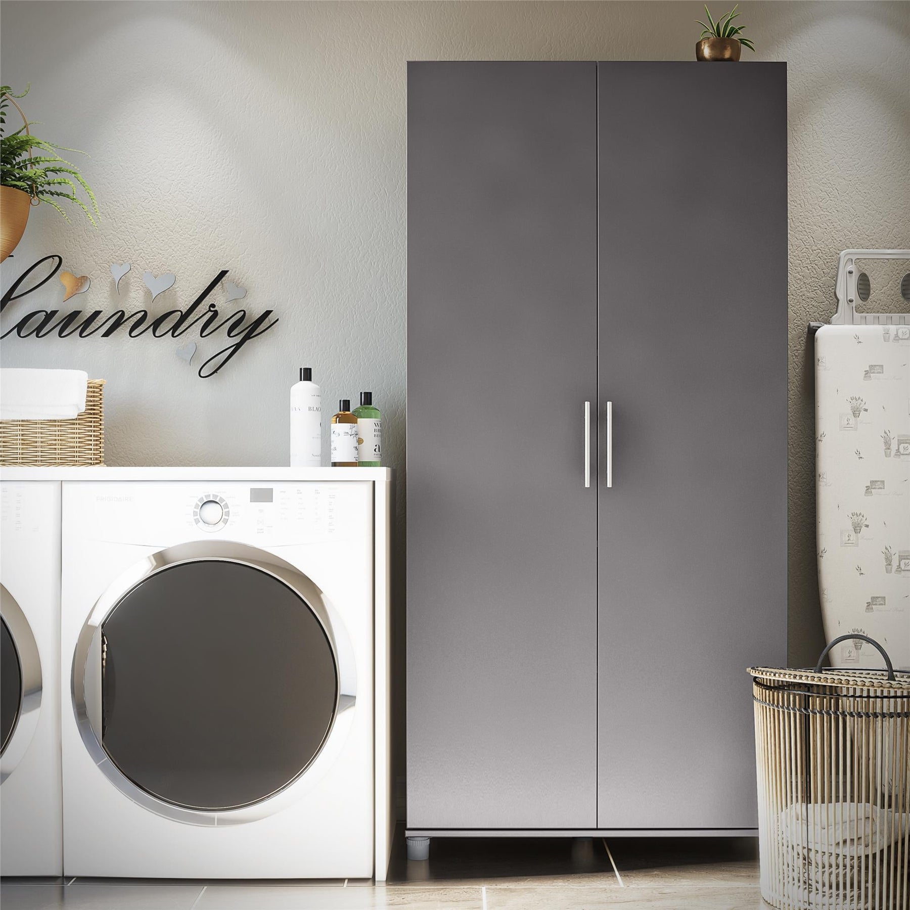 Maximize your storage with the Ameriwood Home Camberly Utility Storage Cabinet. Designed in a sophisticated graphite gray finish, this 74-inch high cabinet offers versatile storage options with its spacious shelves and adjustable features. Crafted from durable laminated particleboard, it's an affordable and stylish addition to any room in your home.