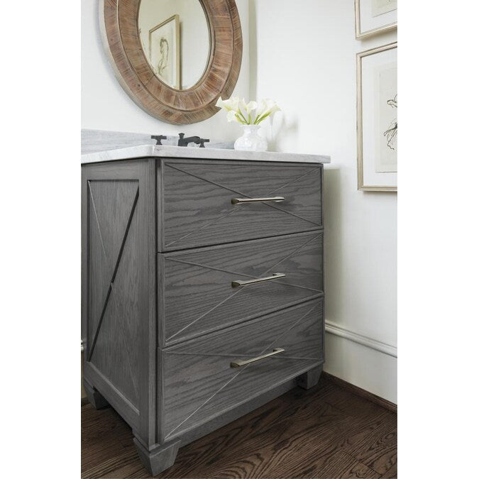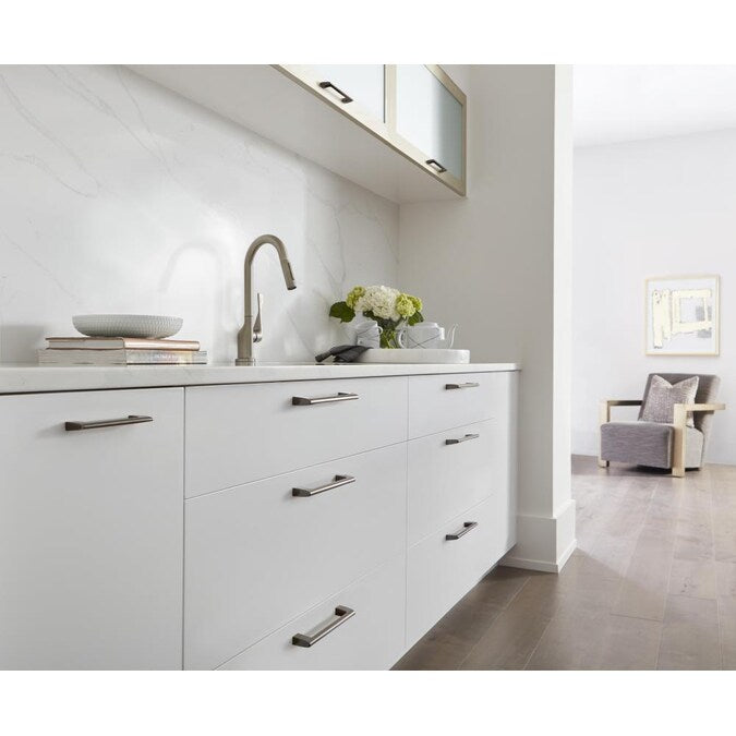 Embrace the refined allure of the Riva Graphite Bar Drawer Pull, where modern minimalism meets elegant graphite sheen. These pulls transform ordinary cabinetry into a statement of contemporary sophistication. Highlight the straight lines and flawless finish as a perfect companion to rich wood or painted millwork. Position them on your kitchen cabinets for a sleek yet inviting atmosphere that epitomizes high-style living.