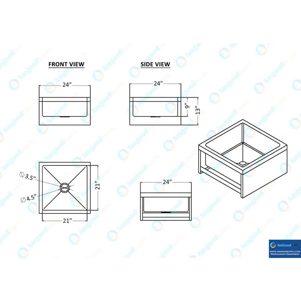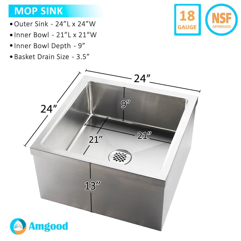 AMGOOD 24" x 24" x 13" Stainless Steel Floor Mop Sink