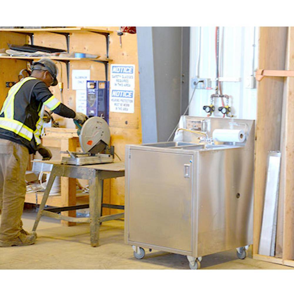 Q: Is the sink easy to move? A: Yes, the sink is equipped with heavy-duty casters, making it easy to transport and position in various settings.
