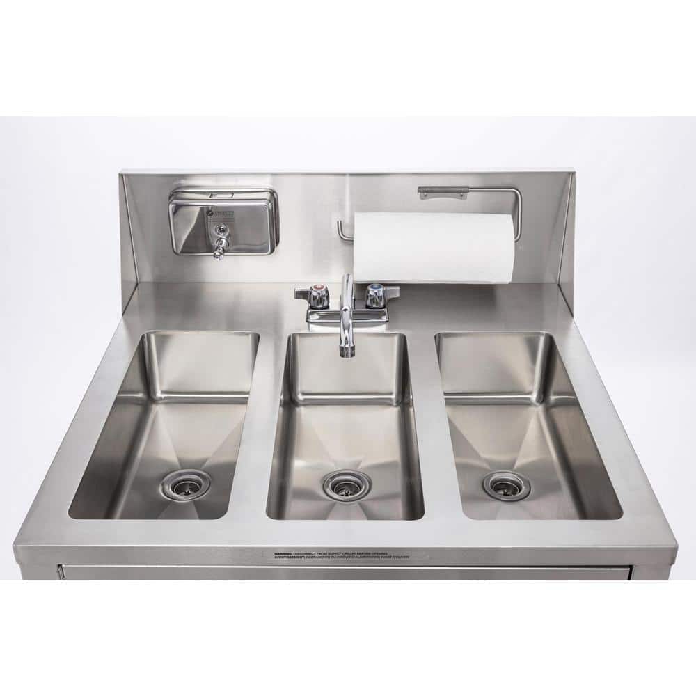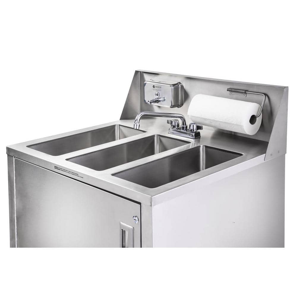 Experience the ultimate in convenience and durability with the Ancaster Food Equipment Stainless Steel Triple Basin Portable Sink. Perfect for both professional and commercial settings, this sink features robust 304 stainless steel construction and provides instant hot and cold water access. Its fully certified design means peace of mind for any hand wash station needs.