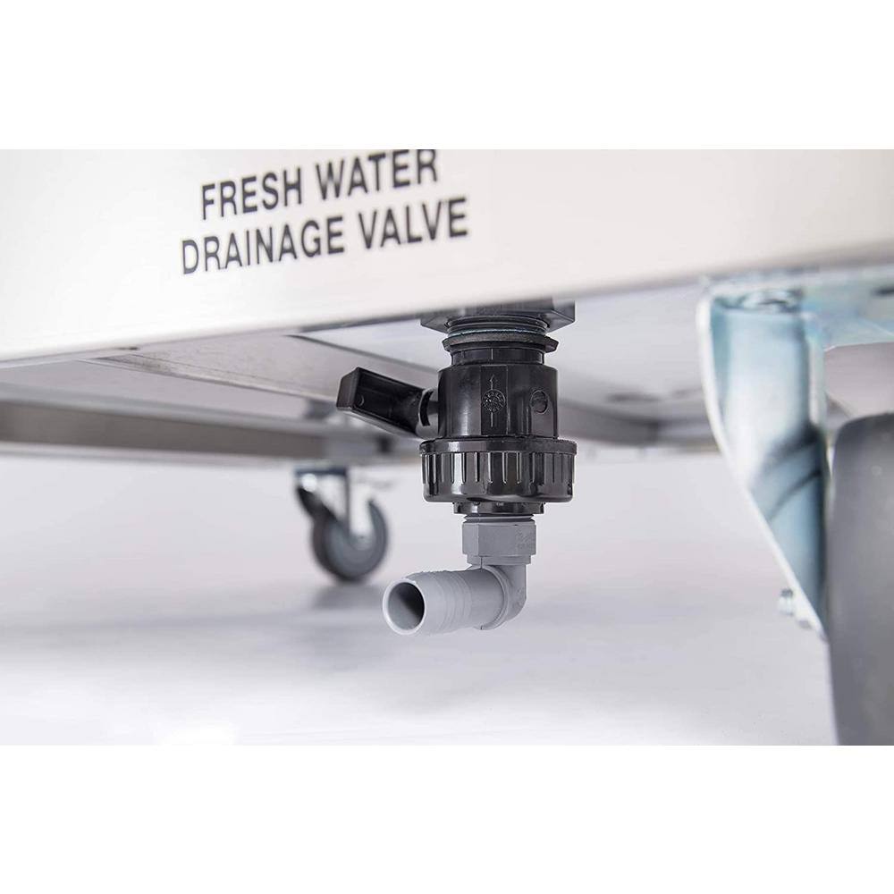 Q: How is waste managed in this sink? A: The sink features easy drainage valves and a 21-gallon waste-water tank to manage used water safely and efficiently.