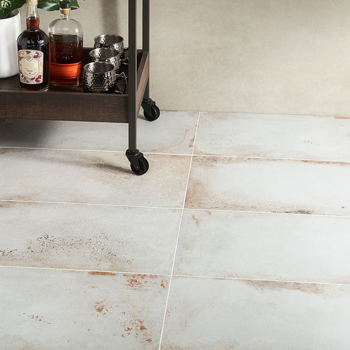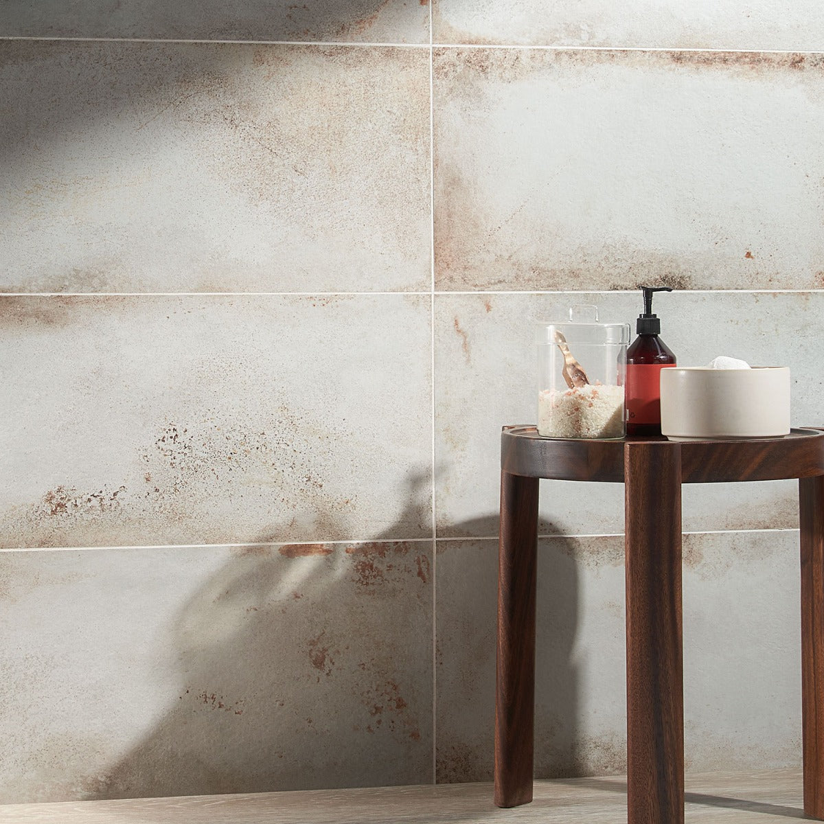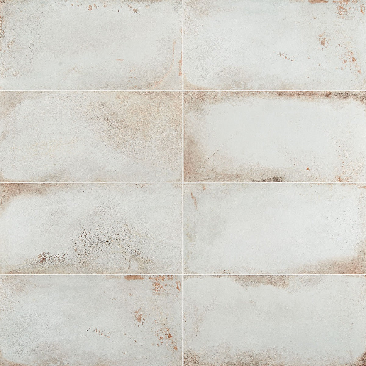 The Flatiron White Matte Porcelain Tile by Angela Harris combines industrial charm with luxurious design. Featuring a cement-inspired look with a patina effect, this tile is perfect for both residential and commercial spaces.