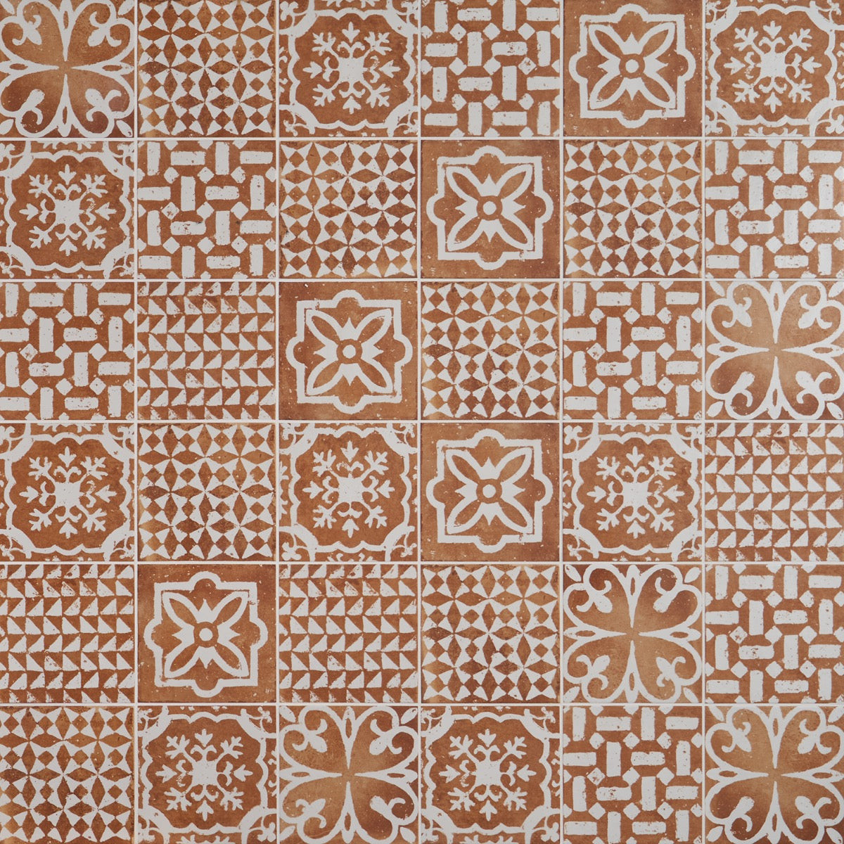 The Angela Harris Mediterra Kasma Terracotta Décor Tile combines vintage charm with modern durability. Featuring a matte finish and a decorative look, these tiles are perfect for creating warm, inviting spaces.