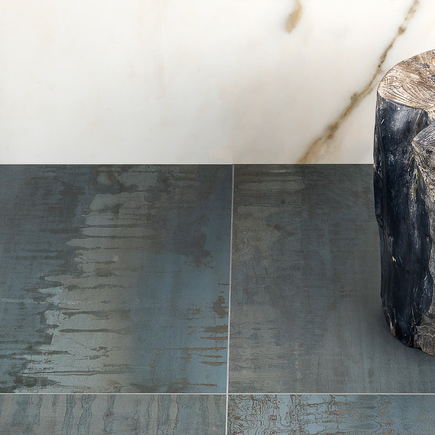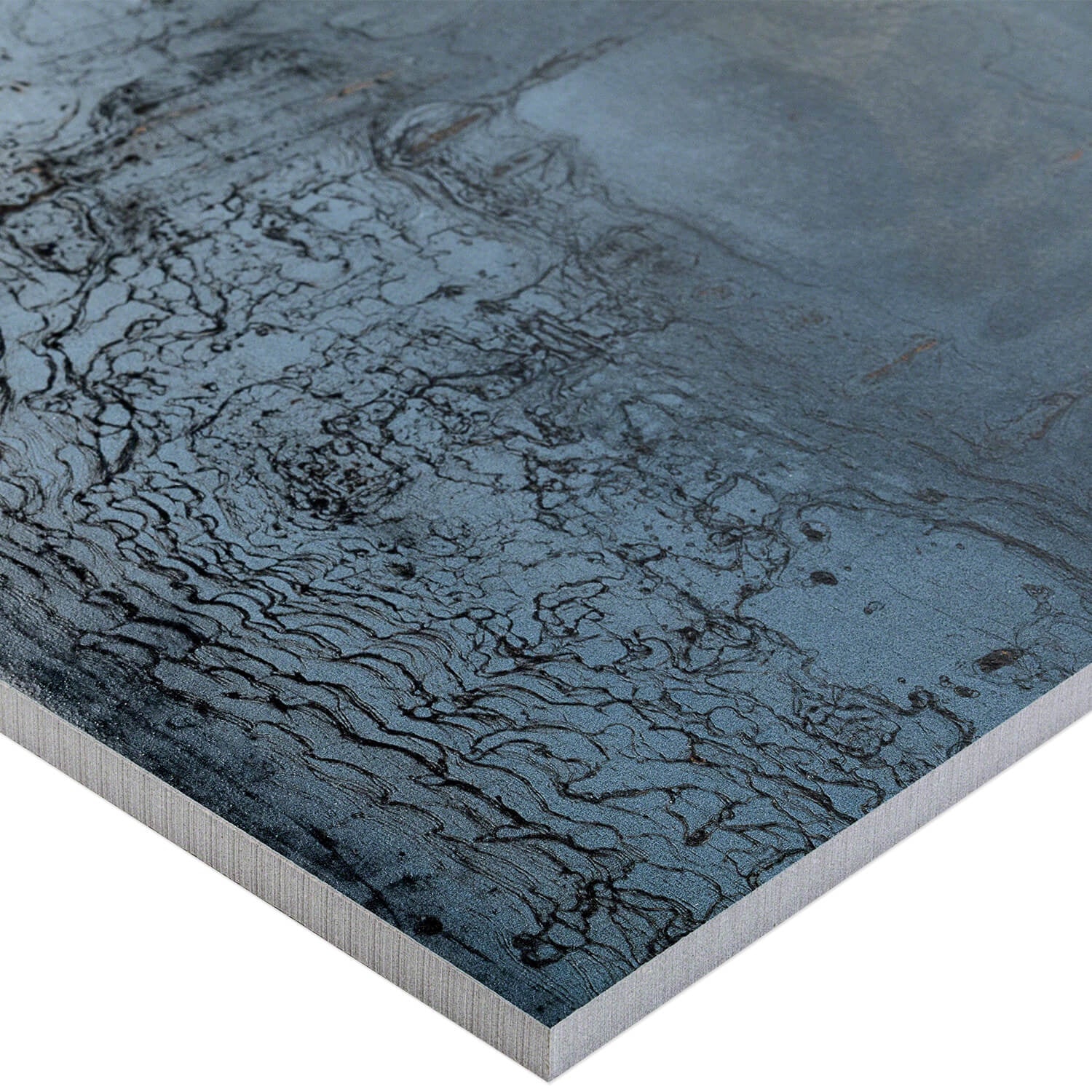 Transform your space with the industrial elegance of the Metallic Blue Matte Porcelain Tile today.