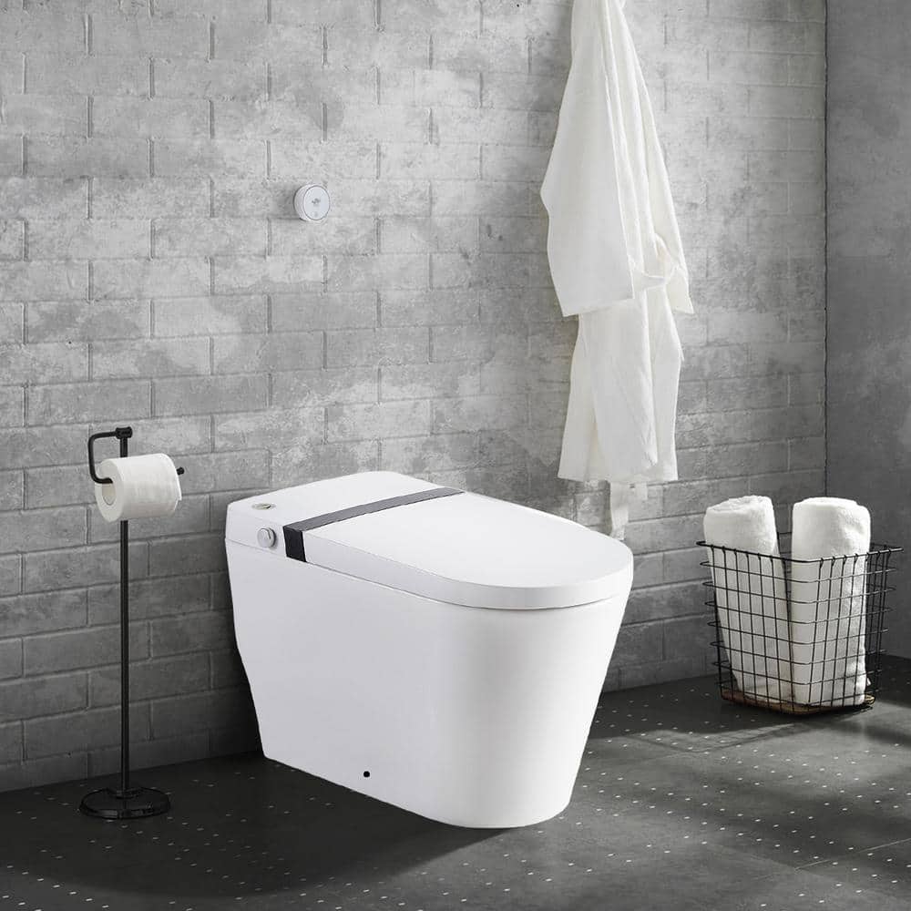 The ANGELES HOME Smart Toilet is a masterpiece that transforms any bathroom into a sanctuary of style and luxury. Its sleek, ceramic lines and the purity of white create a modern aesthetic that blends seamlessly with any decor. Fantastic auto-flushing capability and clever integrated bidet make a statement about comfort and cleanliness that welcomes every guest as family. Style it with plush towels and soft lighting to craft a serene retreat that embodies elevated living.