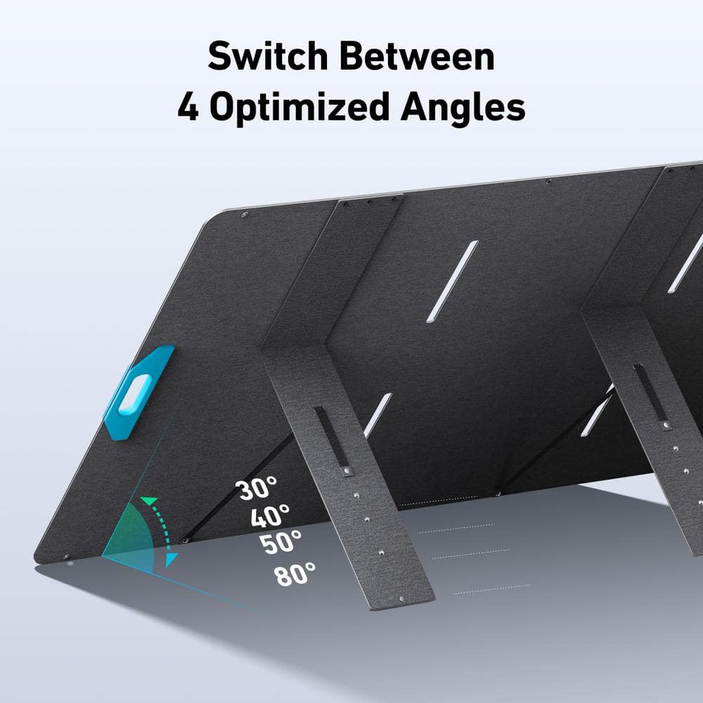 - Adjustable Angles: Features a 3-mode kickstand to adjust the panel's angle to 40°, 50°, or 60° for maximum solar exposure.