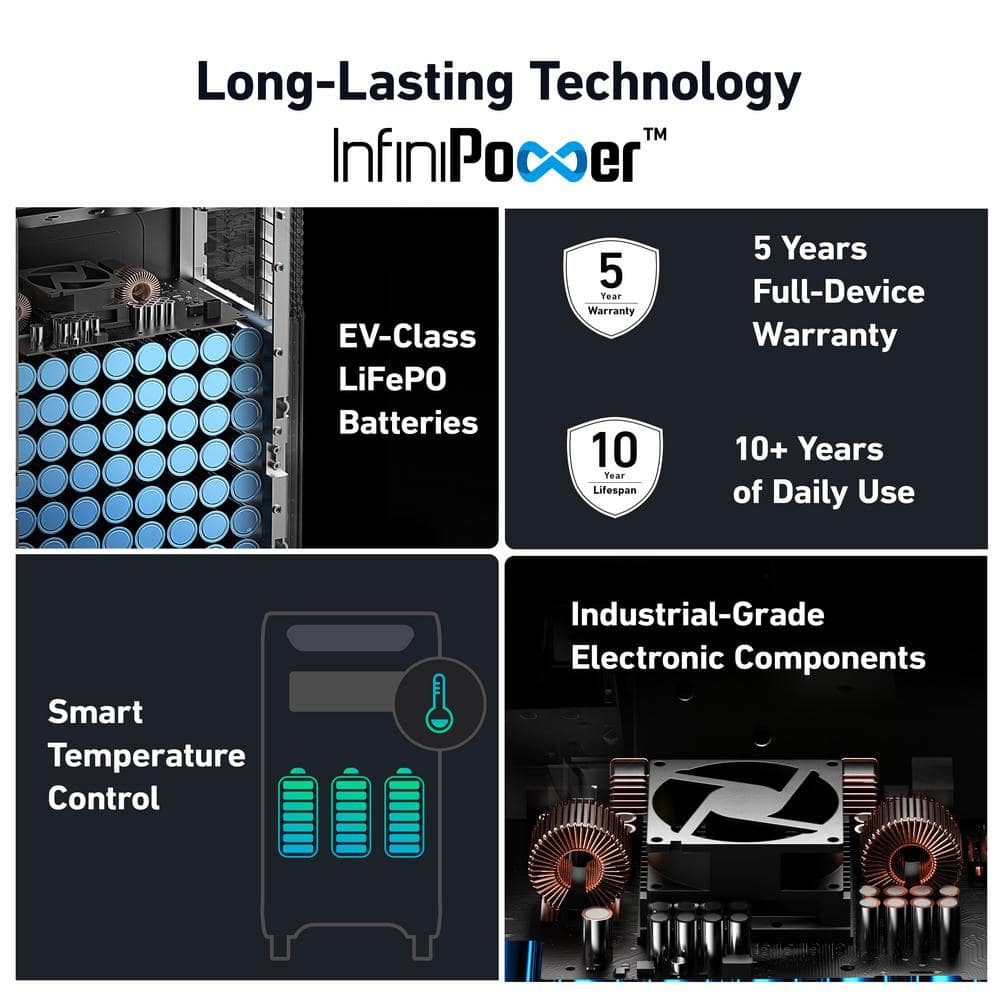 Q: How does this product handle long-term use and weather conditions? A: The SOLIX F3800 is designed for durability with Infinipower technology, ensuring over 3,000 battery cycles to 80% capacity, while its unibody construction is resistant to drops and UV exposure.
