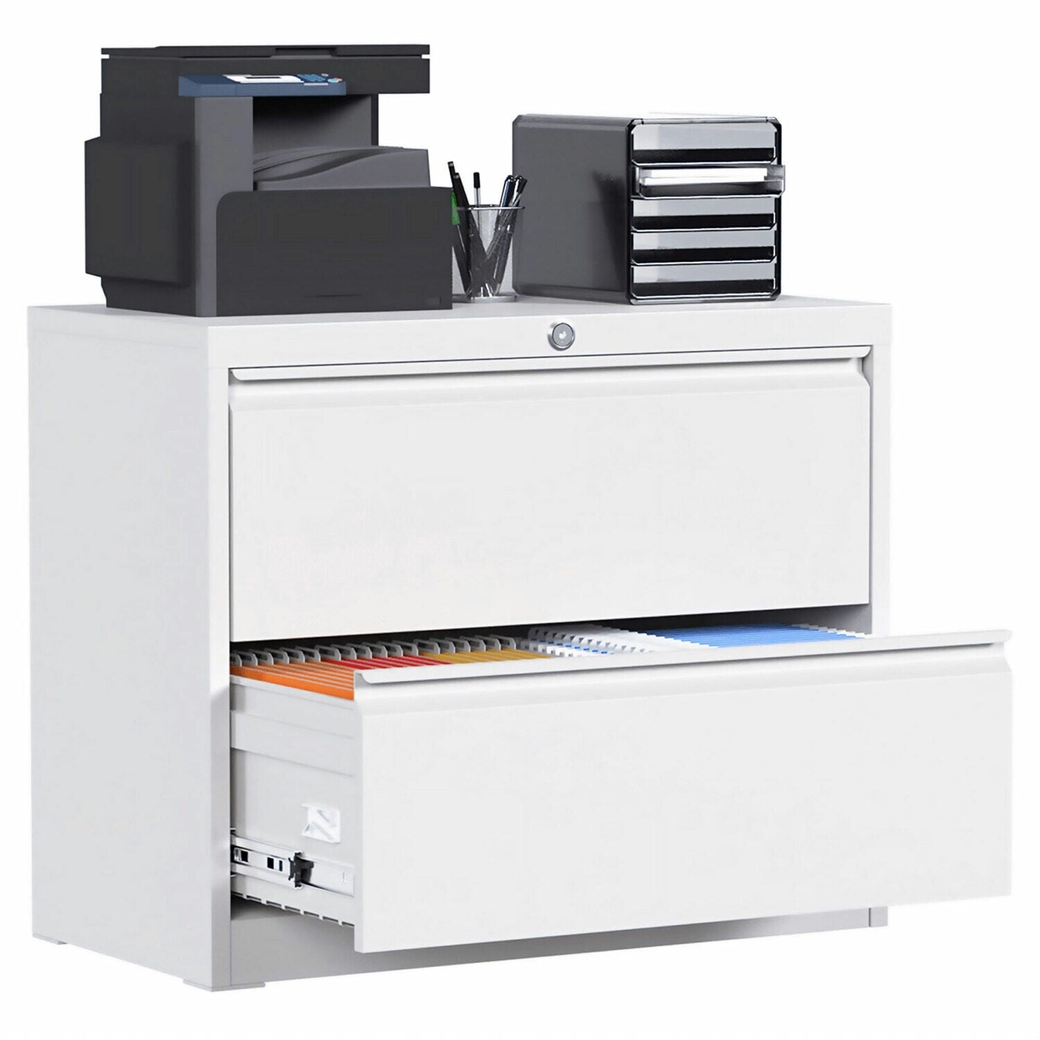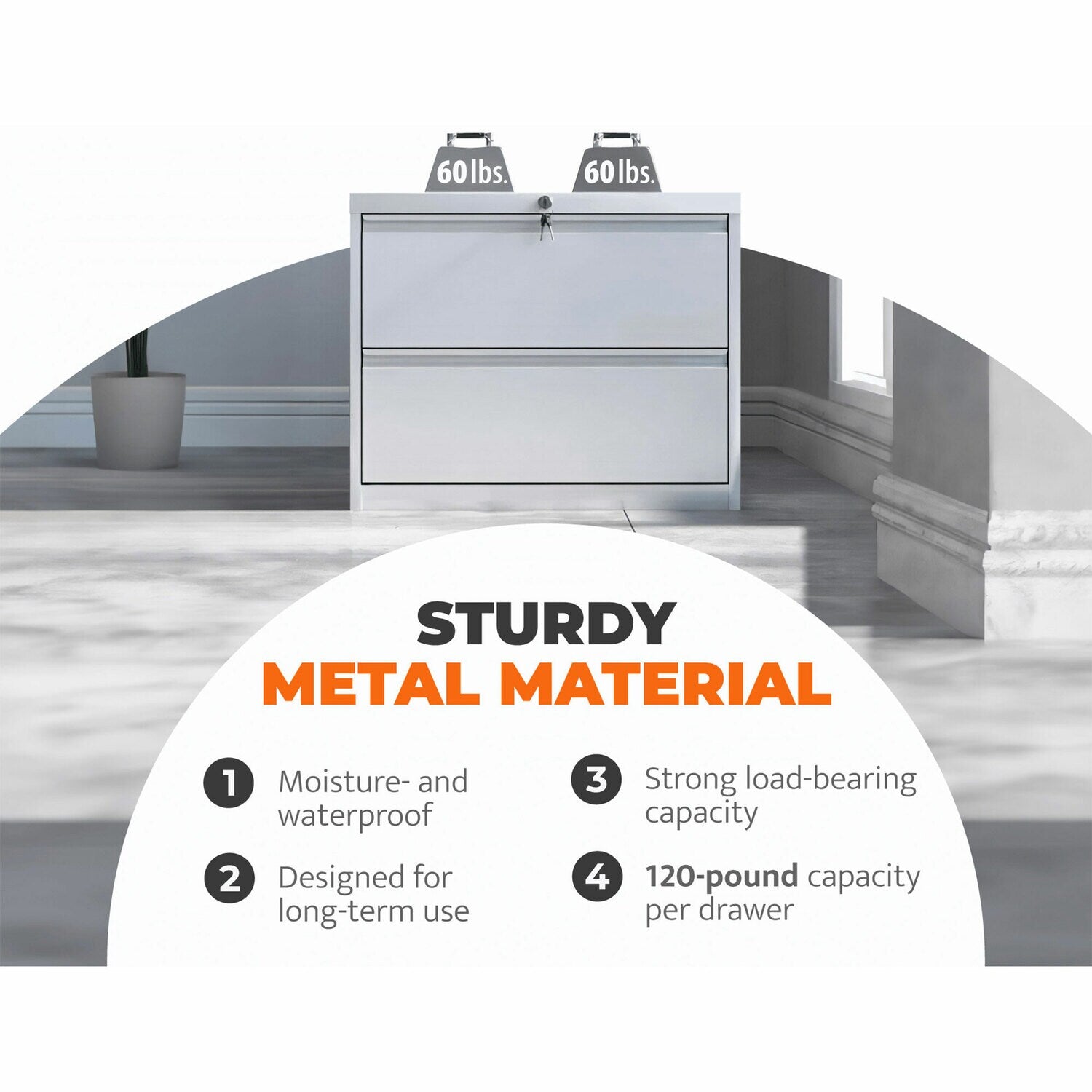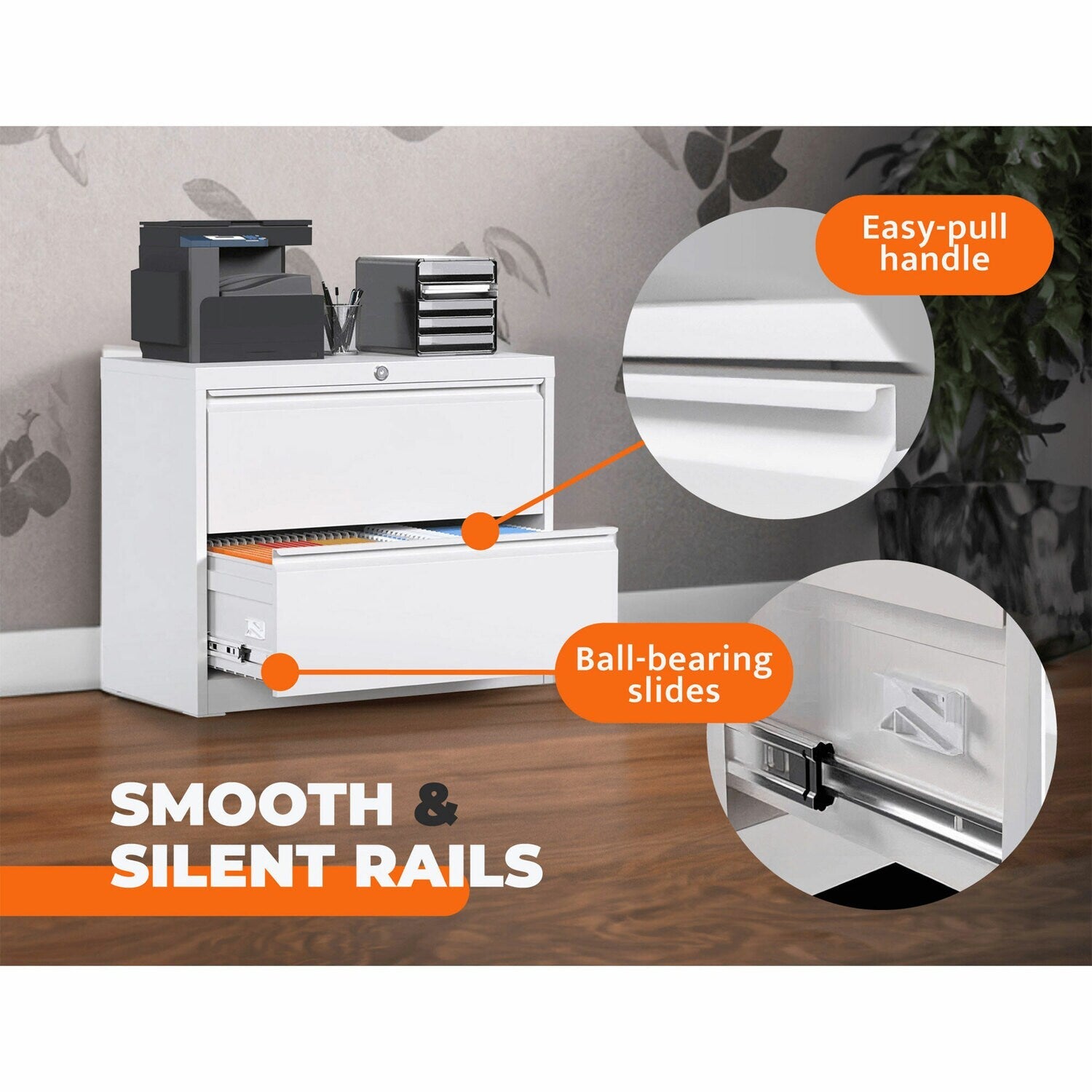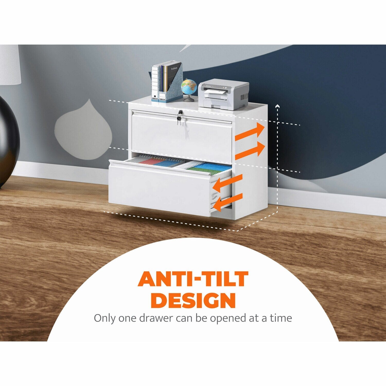 The AOBABO 2-Drawer Lateral File Cabinet in classic white offers a secure and stylish solution for organizing important documents both at home and in the office. With lockable drawers and adjustable hanging bars, this sturdy steel cabinet ensures safe storage and easy access to legal or letter-sized files.