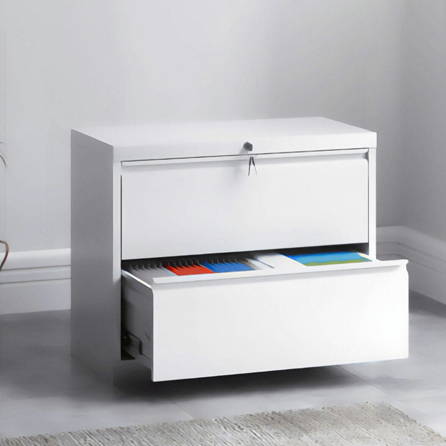 Introducing a file cabinet that redefines secure storage with its pristine white steel construction, offering elegance and security. This cabinet transforms cluttered spaces into organized havens with its sleek, timeless design. A standout feature is its lockable drawers, ensuring confidential storage while adding to its polished aesthetic. Perfect for home offices, consider accessorizing with soft grey decor elements to complement its refined style. It's more than just a filing cabinet; it's a testament to taste and functionality in luxurious living.