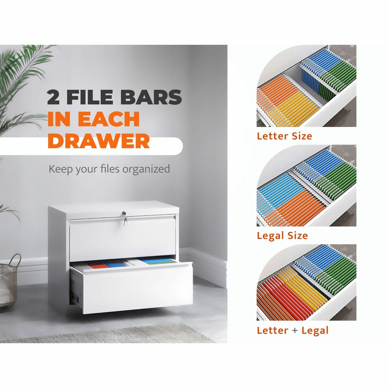 Q: Can the cabinet accommodate both legal and letter-sized files? A: Absolutely, each drawer features adjustable hanging bars to effectively organize both legal and letter-sized files.