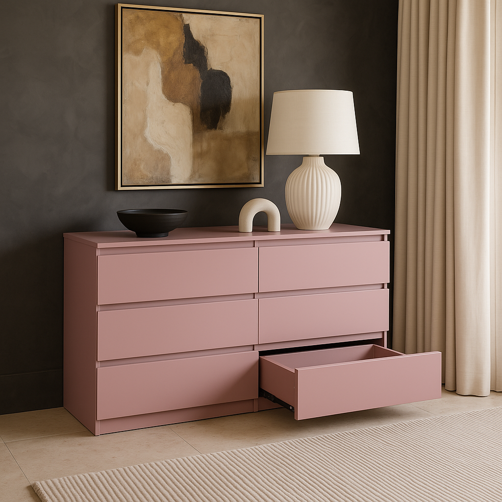Transform your space with the Aoibox Pink 6-Drawer Storage Cabinet, a perfect blend of style and utility. Its charming pink finish and minimalist design add a touch of sophistication to any room. Pair it with neutral tones or bold accents to create a harmonious aesthetic. This cabinet is not just a storage solution; it's a centerpiece that elevates your interior to luxurious living.